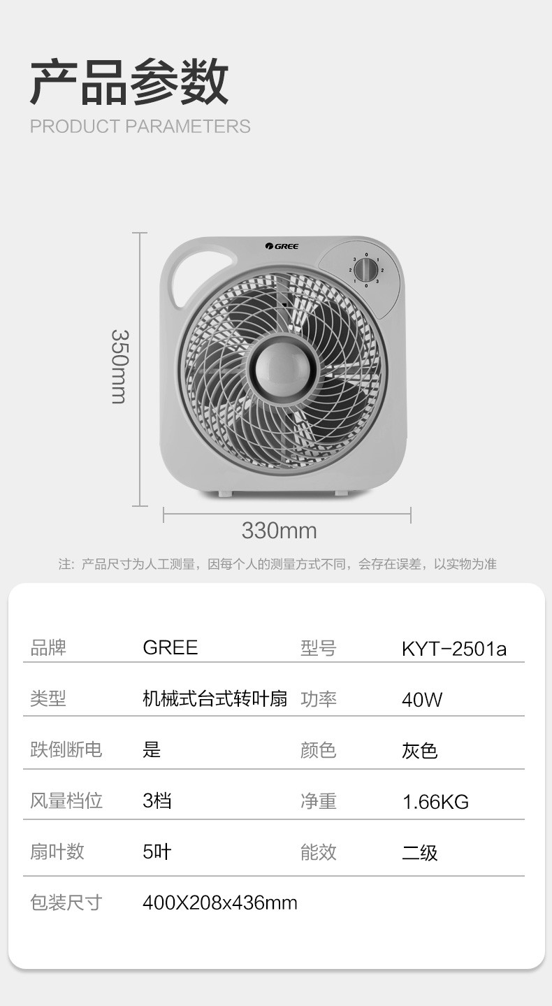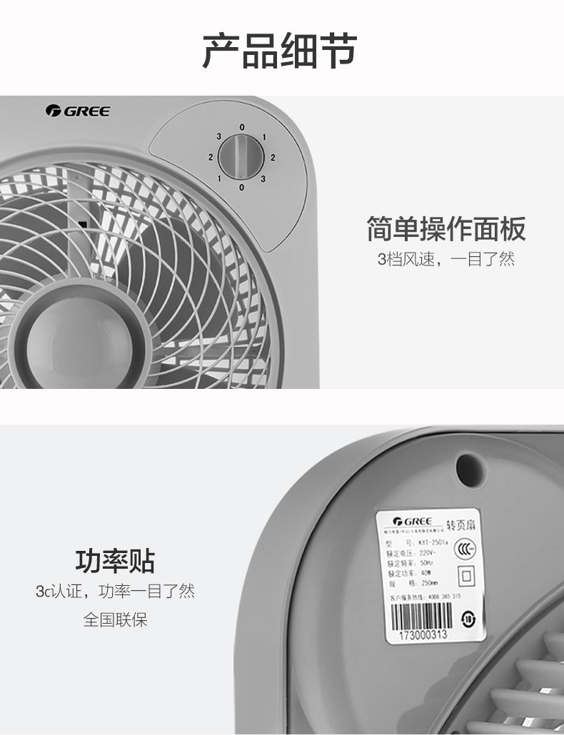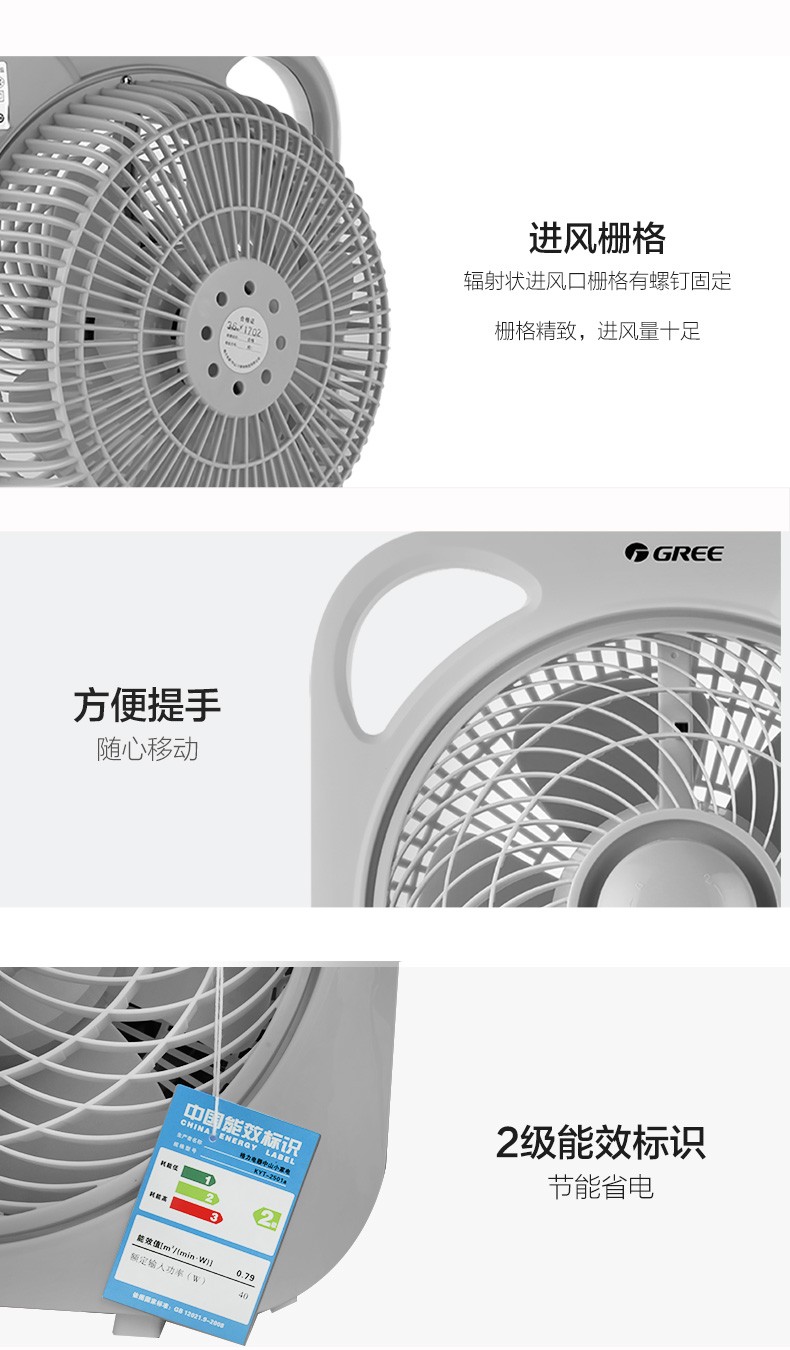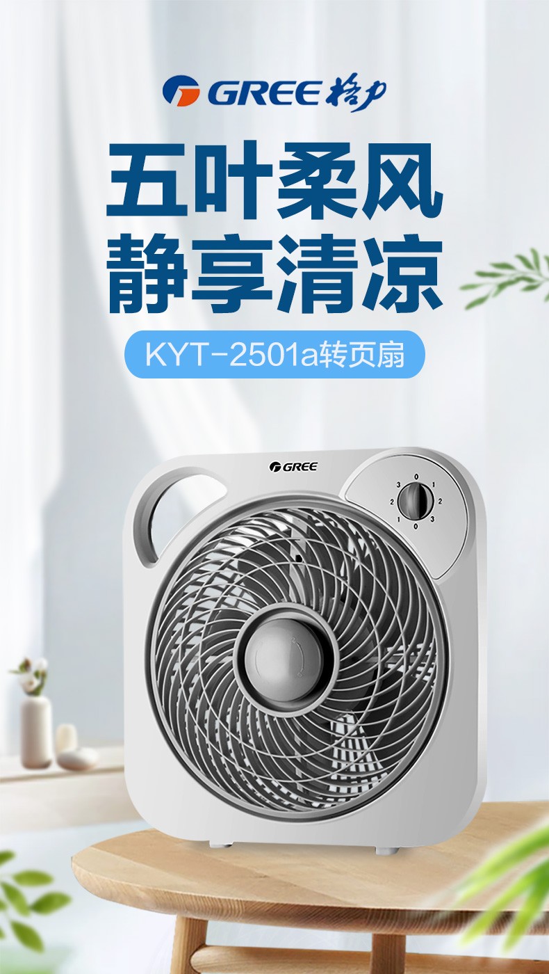 - 商品名称:格力(GREE)家用电风扇台式转页扇办公卧室宿舍节能迷你便携鸿运扇KYT-2501a 白+灰