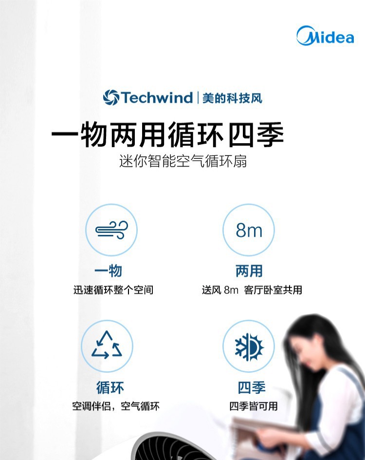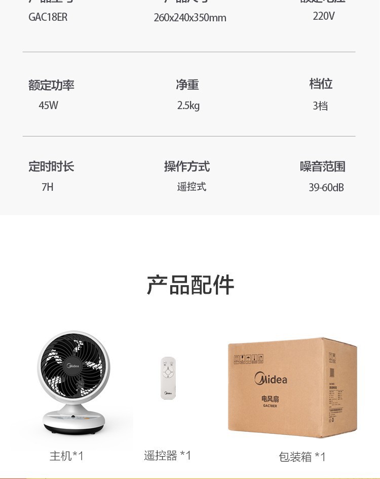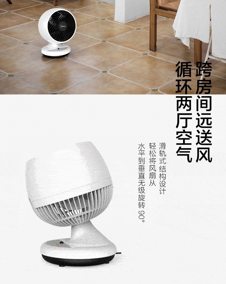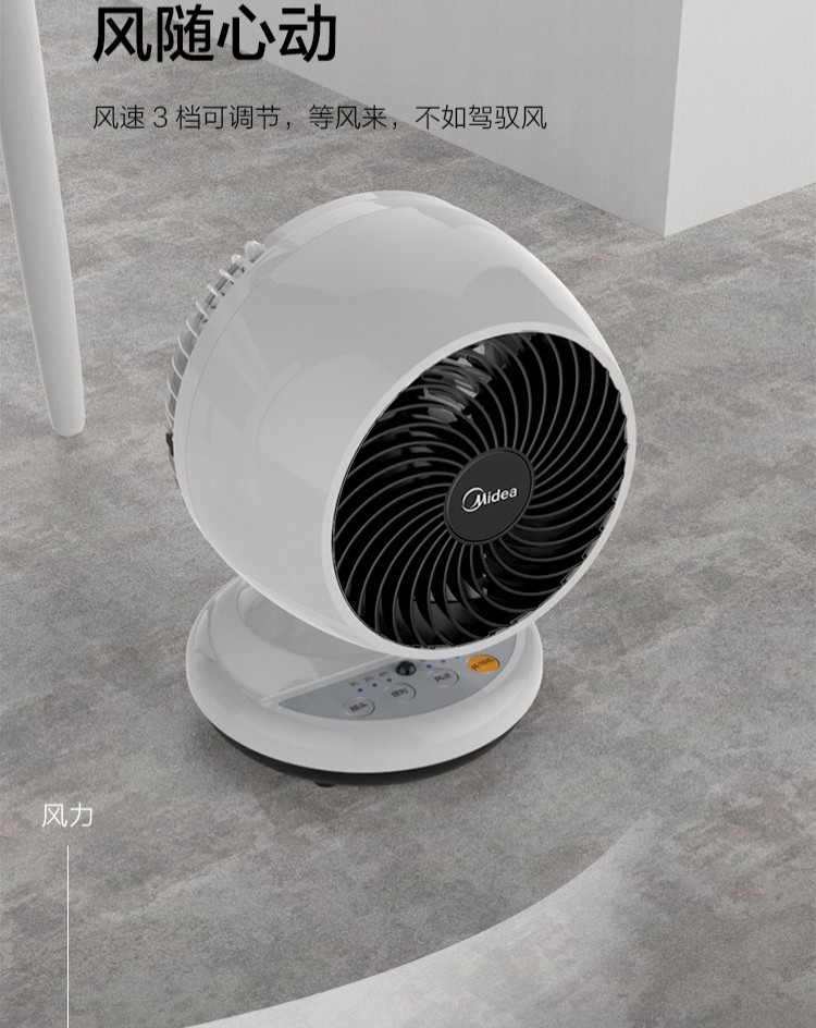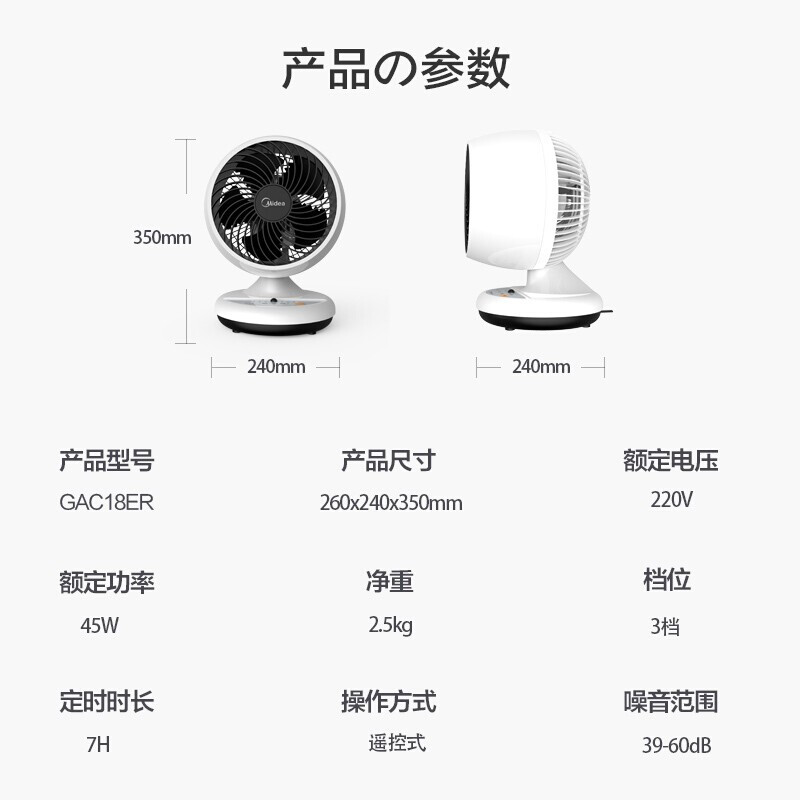 - 商品名称:美的(Midea)GAC18ER空气循环扇涡轮电风扇台式家用落地扇办公扇摇头换气对流通风循环 GAC18ER