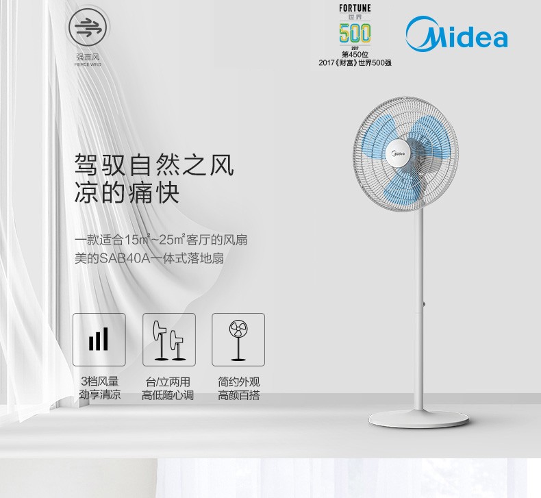 美的(Midea)SAB40A落地扇风扇电风扇落地风扇电风扇台式立式 SAB40A
