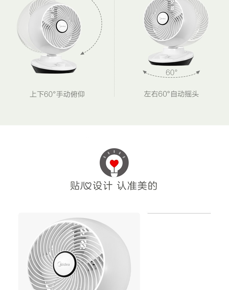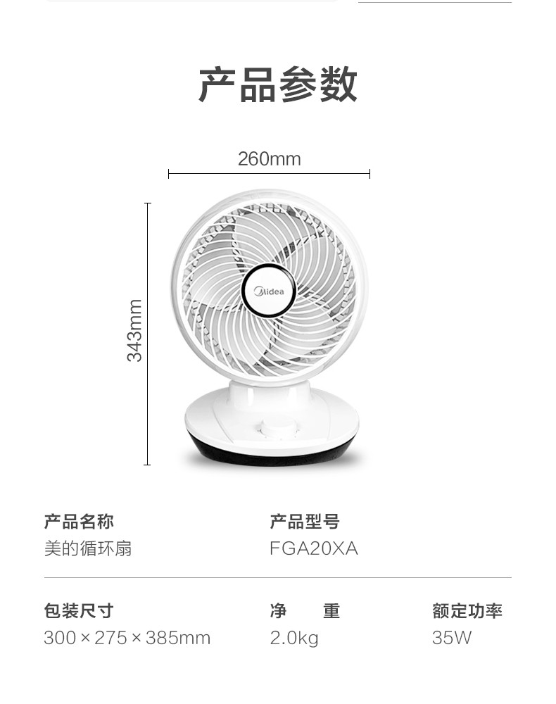 - 商品名称:美的(Midea)FGA20XA电风扇空气对流循环扇/台式风扇/宿舍学生风扇家用静音摇头涡轮扇 FGA20XA