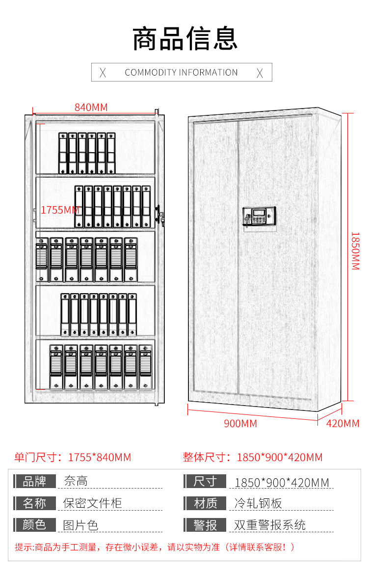 商品名称:奈高保密柜文件柜办公柜电子密码锁档案柜防盗铁皮柜木纹色通门不带斗