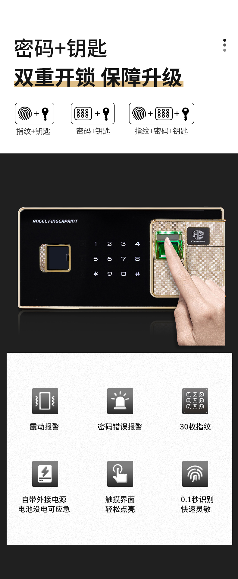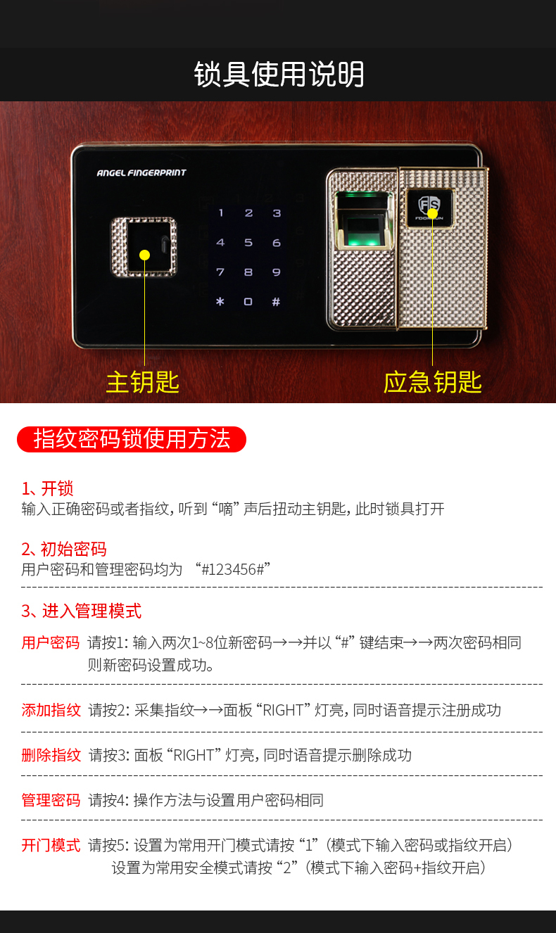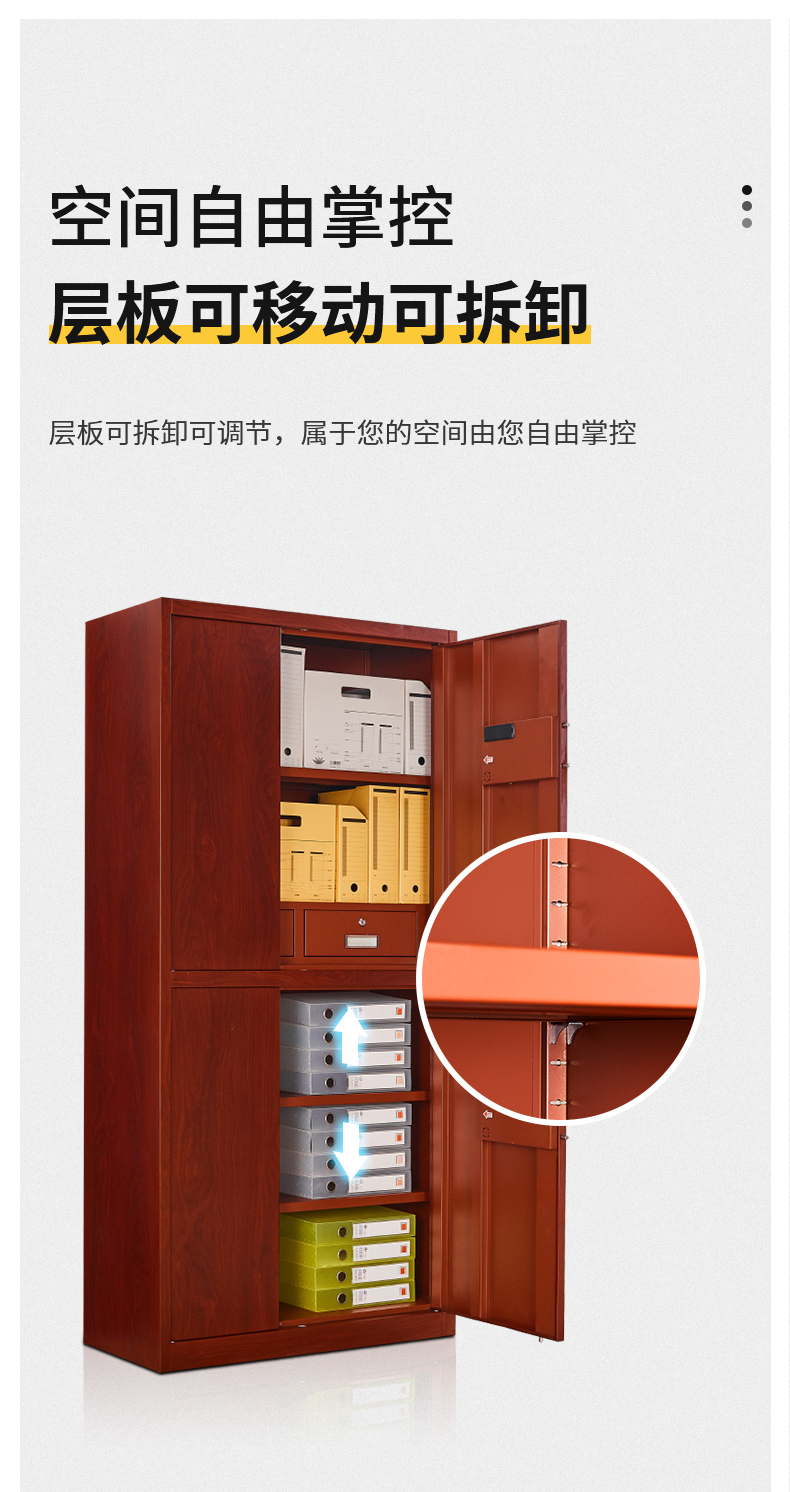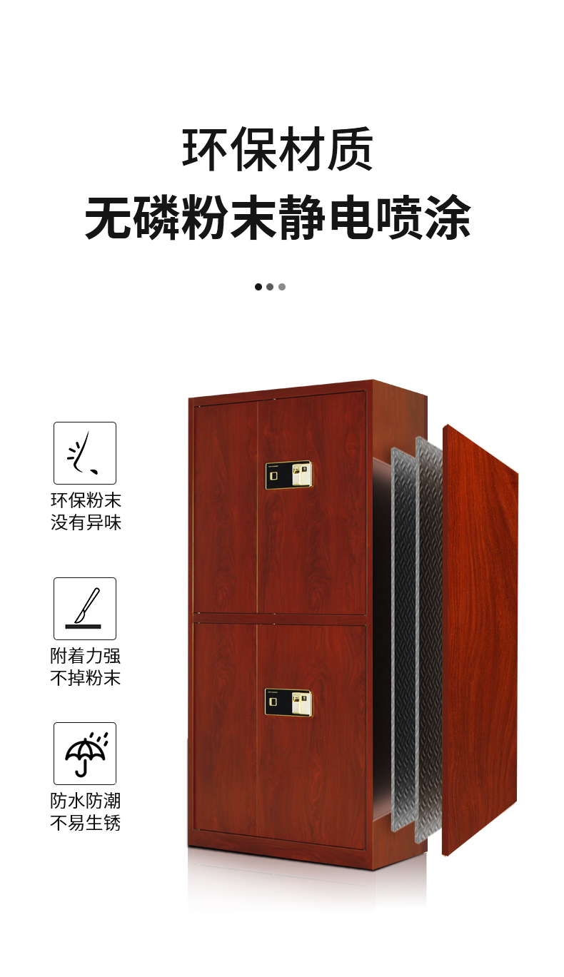 商品名称:洛克菲勒仿木纹指纹锁通双节保密柜钢制办公指纹电子密码锁文件柜高1900宽900深430