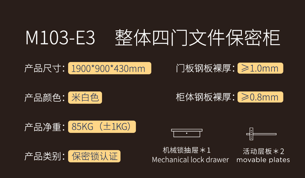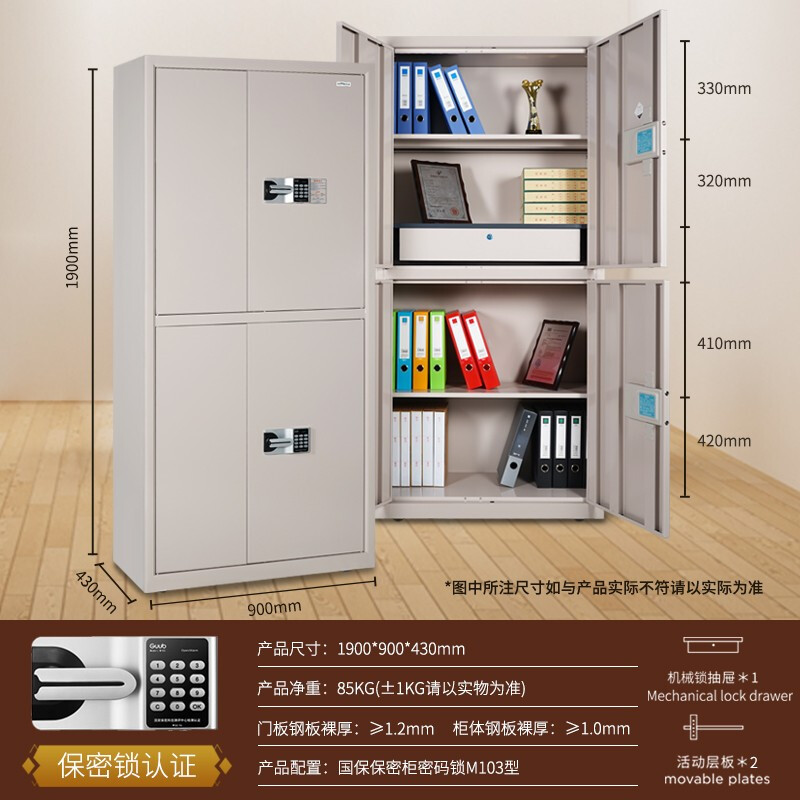 - 商品名称:国保保密柜E3电子密码锁办公文件柜国家保密涉密认证资料柜加厚全钢大型档案柜通双节凭证文档保险柜M103-E3