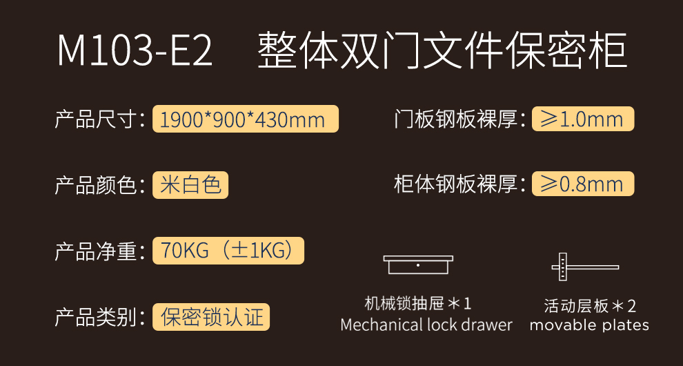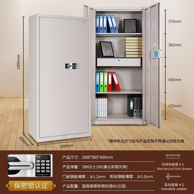 - 商品名称:国保保密柜E2密码锁办公电子大型文件柜国家保密涉密认证资料柜加厚全钢档案柜通体文档保险柜凭证柜M103-E2