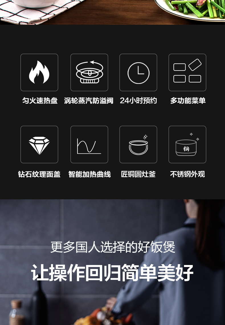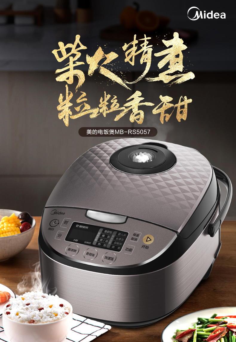 - 商品名称:美的(Midea)电饭煲电饭锅5L智能预约电饭煲匠铜圆灶釜内胆家用电饭煲MB-RS5057