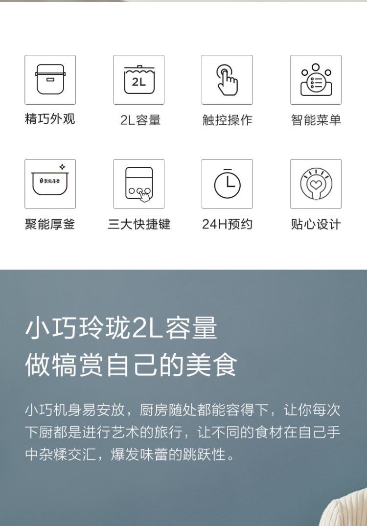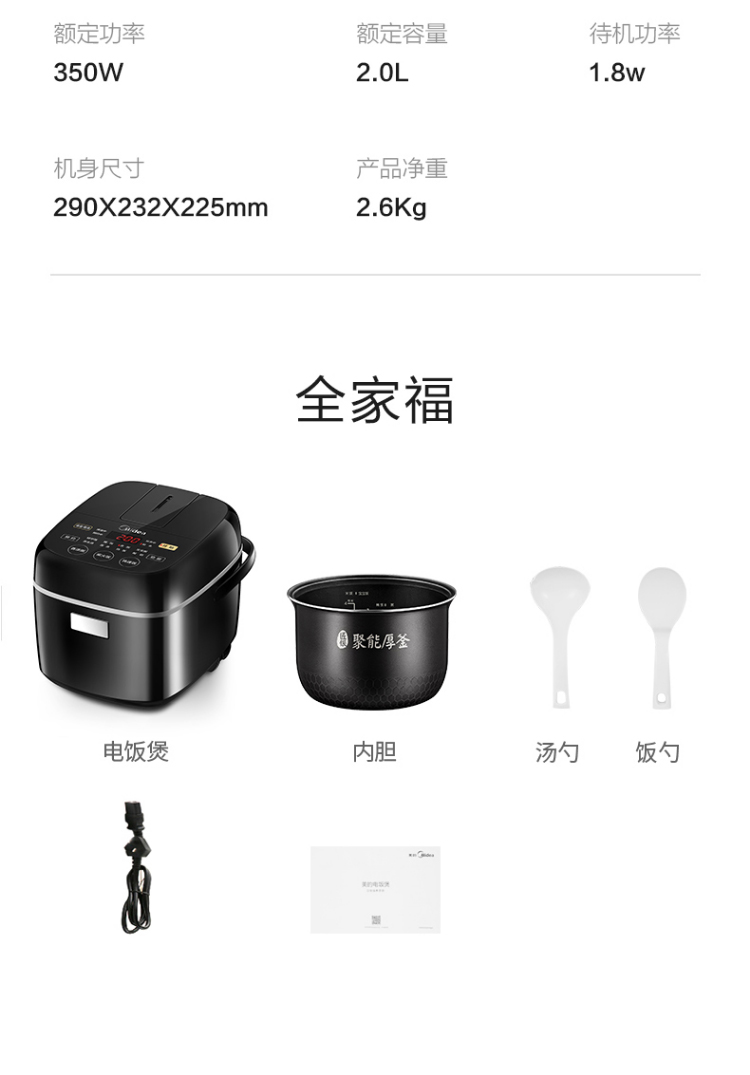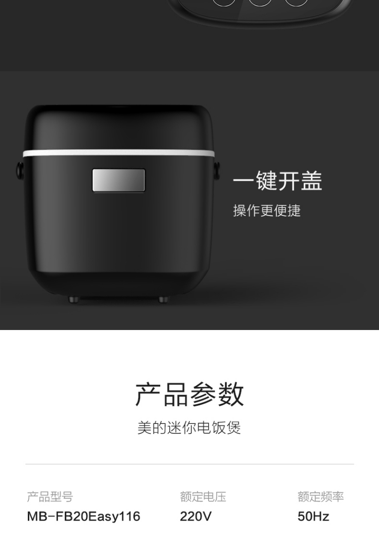 - 商品名称:美的(Midea)电饭煲电饭锅2L迷你容量电饭煲智能触摸操控一键柴火饭功能MB-FB20Easy116(24小时预约)