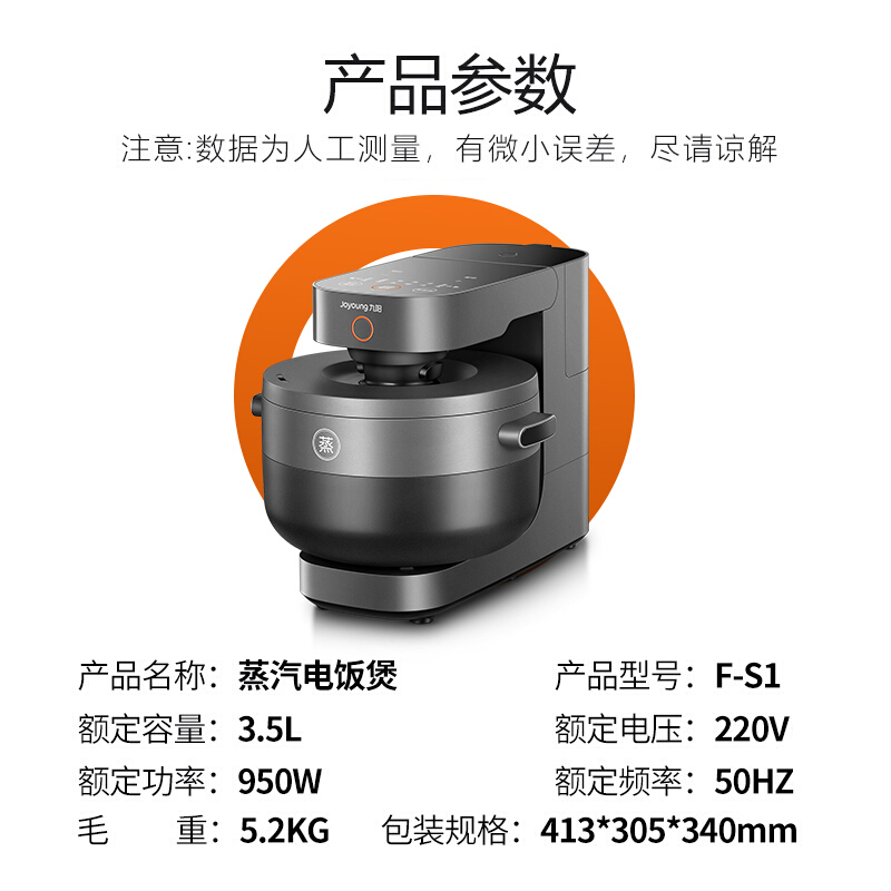 - 商品名称:九阳 Joyoung电饭煲 电饭锅3.5L 创新蒸汽加热 无涂层不粘内胆 F-S1