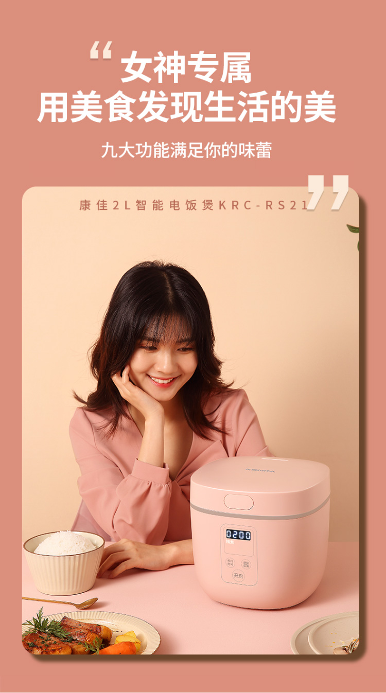 - 商品名称:康佳(KONKA)迷你电饭煲小电饭锅 2L容量智能温控【女神专属】粉色 KRC-RS21