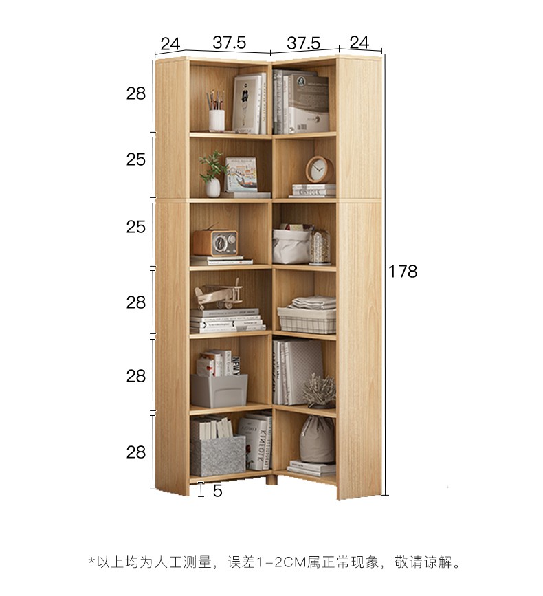 - 商品名称:蔓斯菲尔 北欧墙角置物转角柜客厅多功能收纳柜三角柜书房落地书柜 橡胶木色148CM