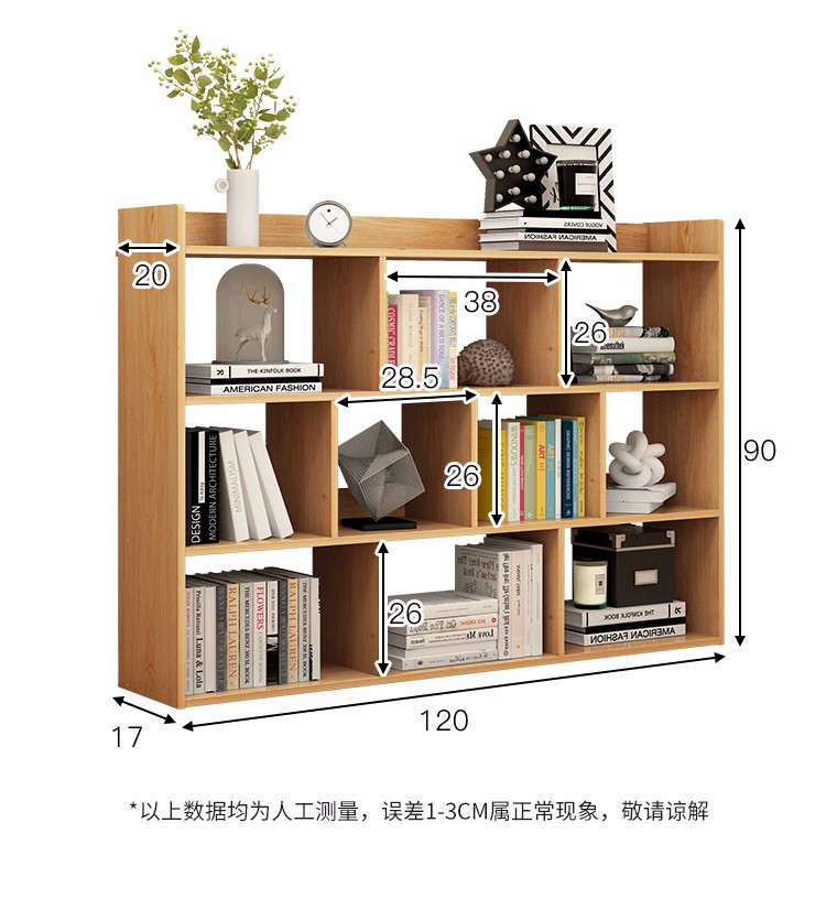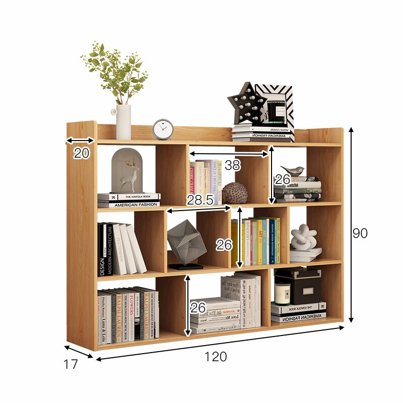 商品名称:蔓斯菲尔书架简易落地书柜组合格子仿实木收纳柜置物架储物柜 120CM黄梨木色