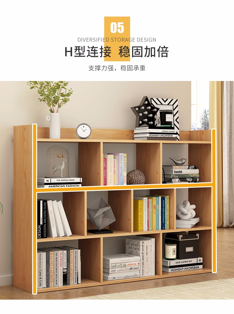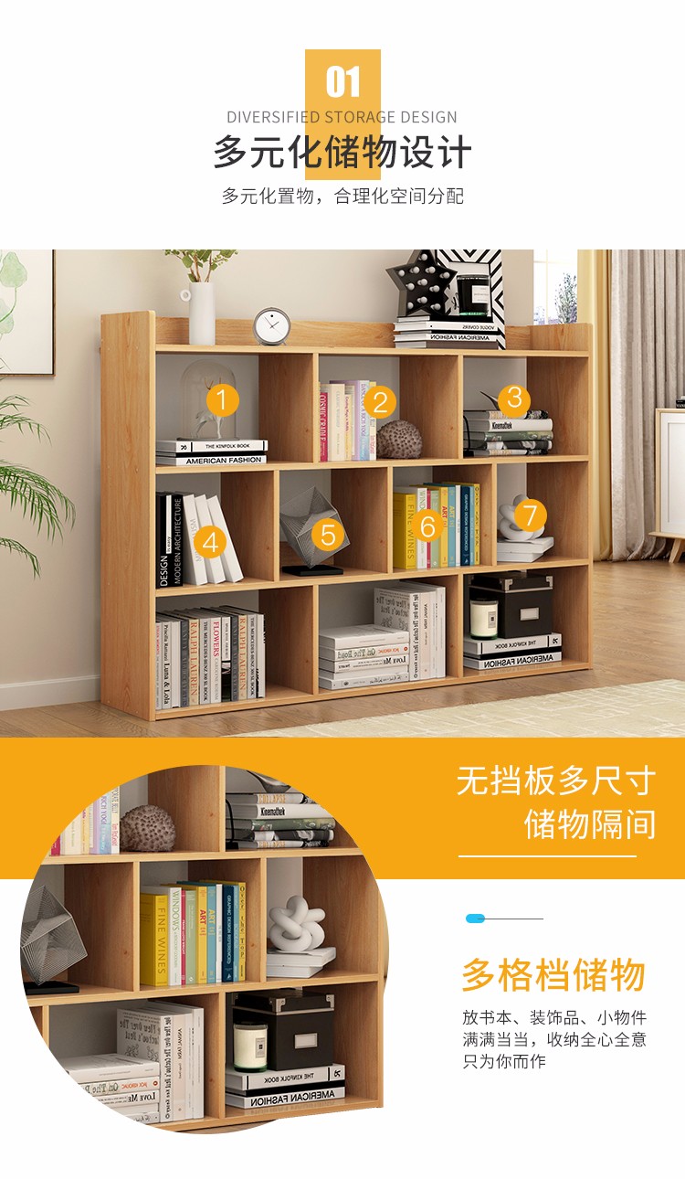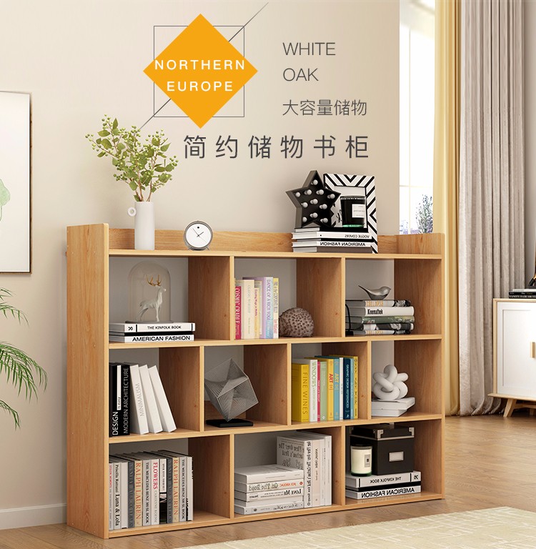 商品名称:蔓斯菲尔书架简易落地书柜组合格子仿实木收纳柜置物架储物柜 100CM暖白色