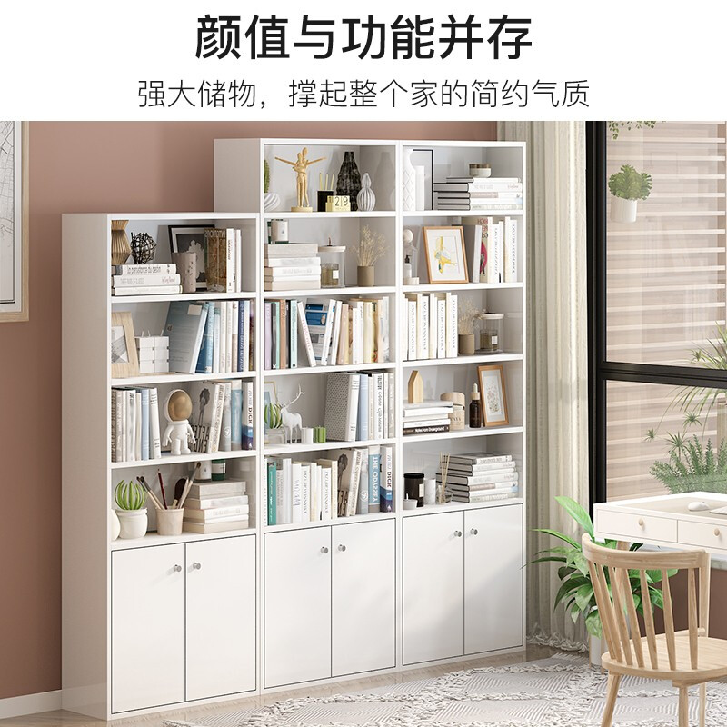 家乐铭品 书柜书架 收纳架储物柜1.59M加固带门自由组合简易柜子省空间落地文件柜现代简约客厅置物柜H592