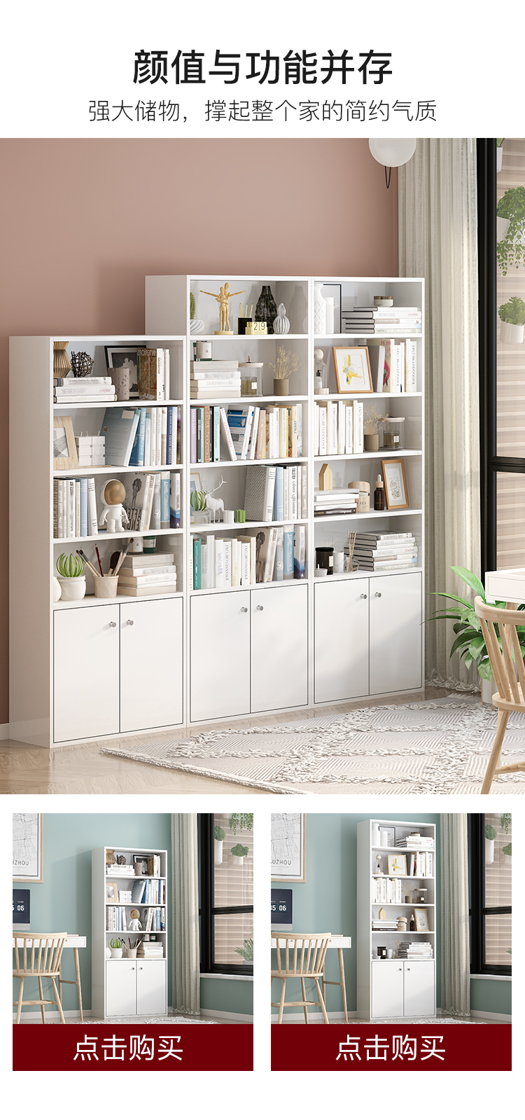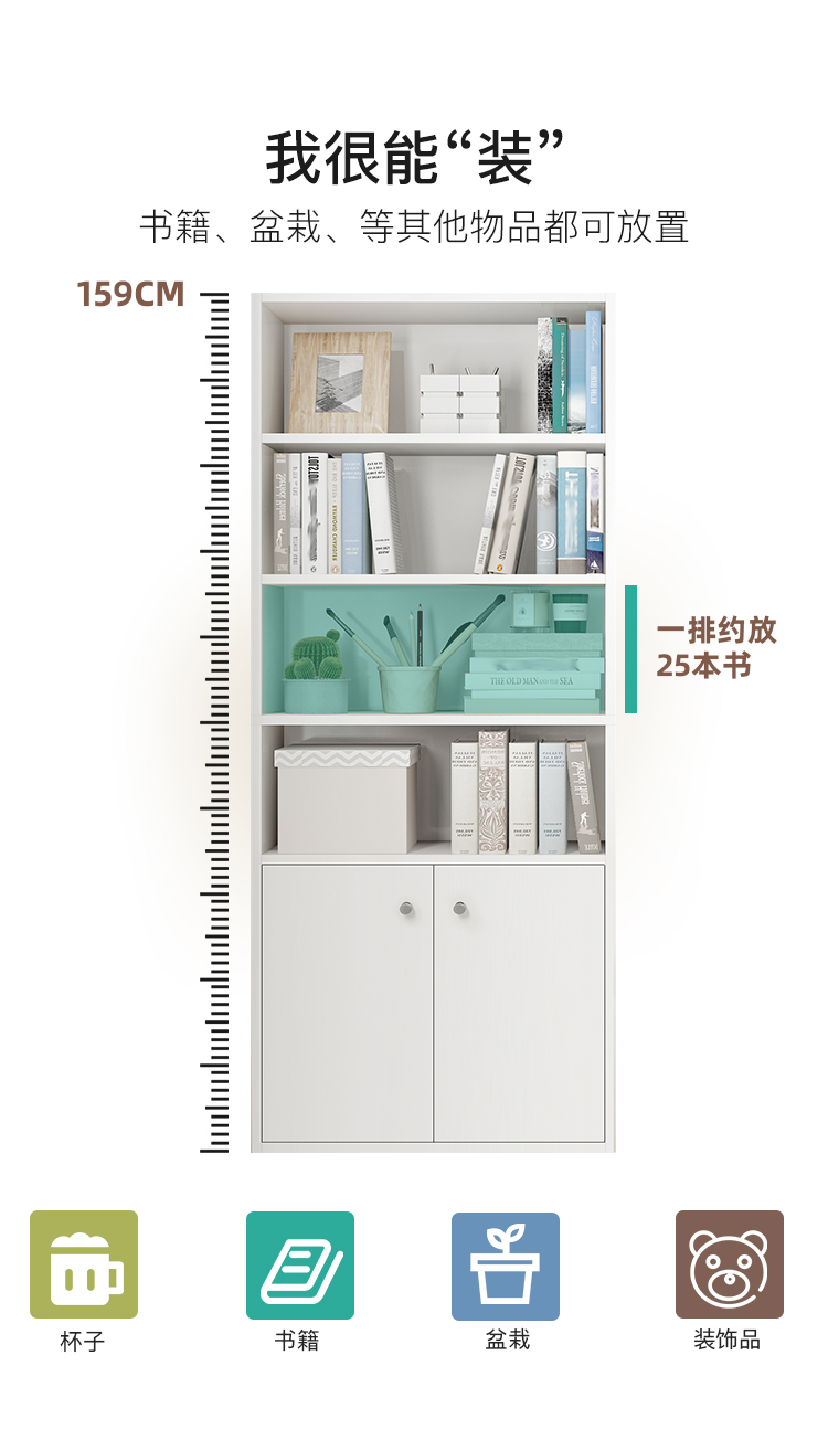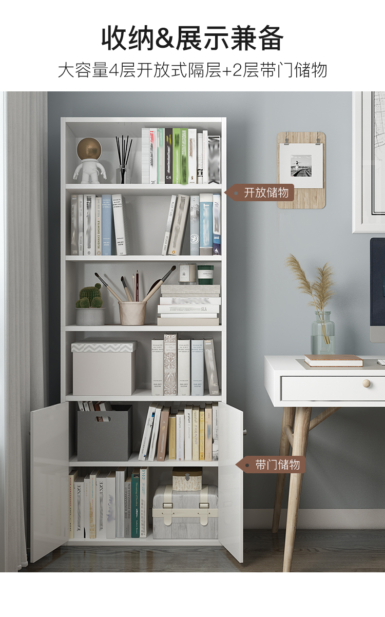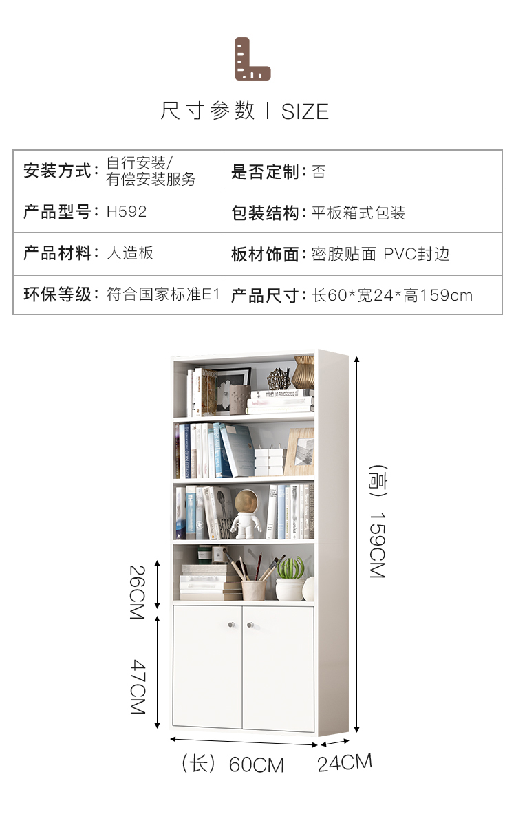 商品名称:家乐铭品 书柜书架 收纳架储物柜1.59M加固带门自由组合简易柜子省空间落地文件柜现代简约客厅置物柜H592