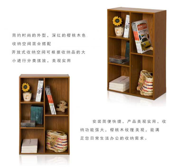 - 商品名称:慧乐家 书柜书架 鲁比克五格简易书橱柜子 储物置物架 深红樱桃木色 11051