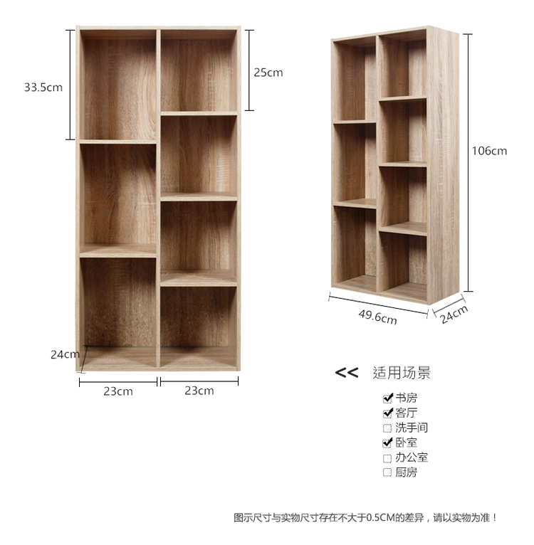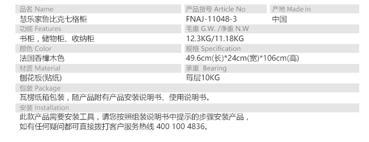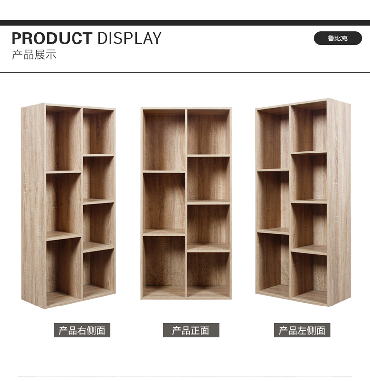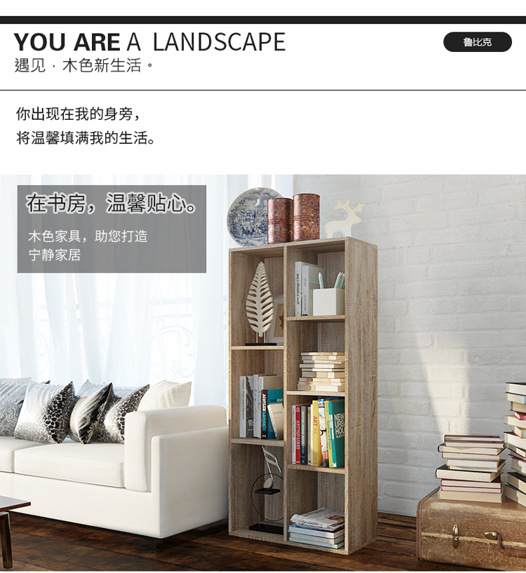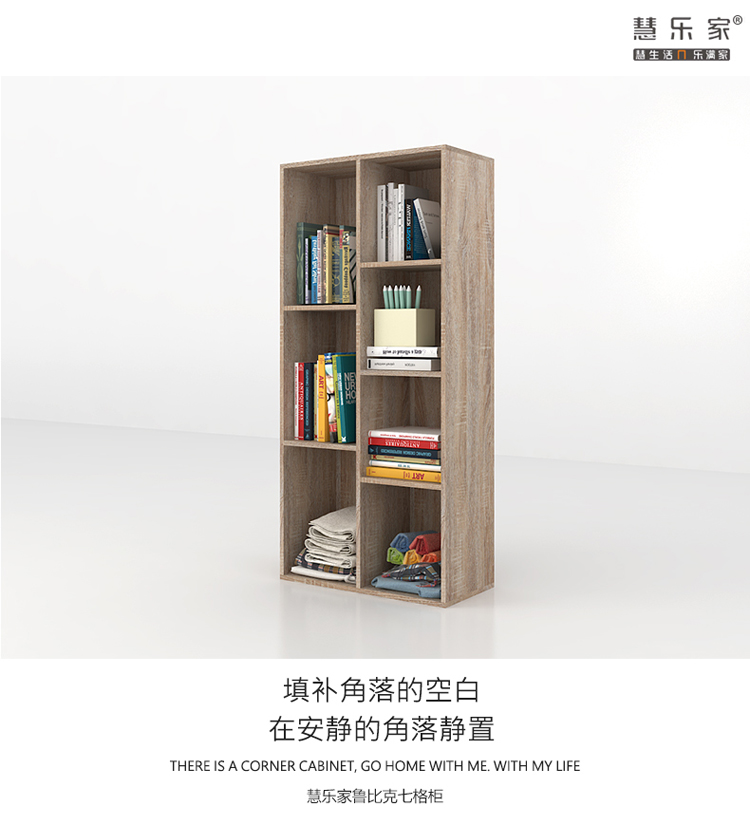 商品名称:慧乐家 书柜书架 鲁比克七格柜 不对称收纳储物展示柜 法国香樟木色 11048-3