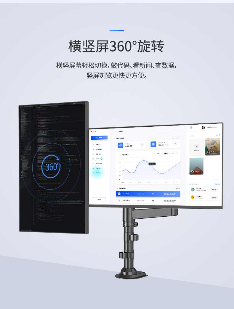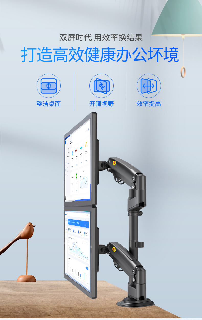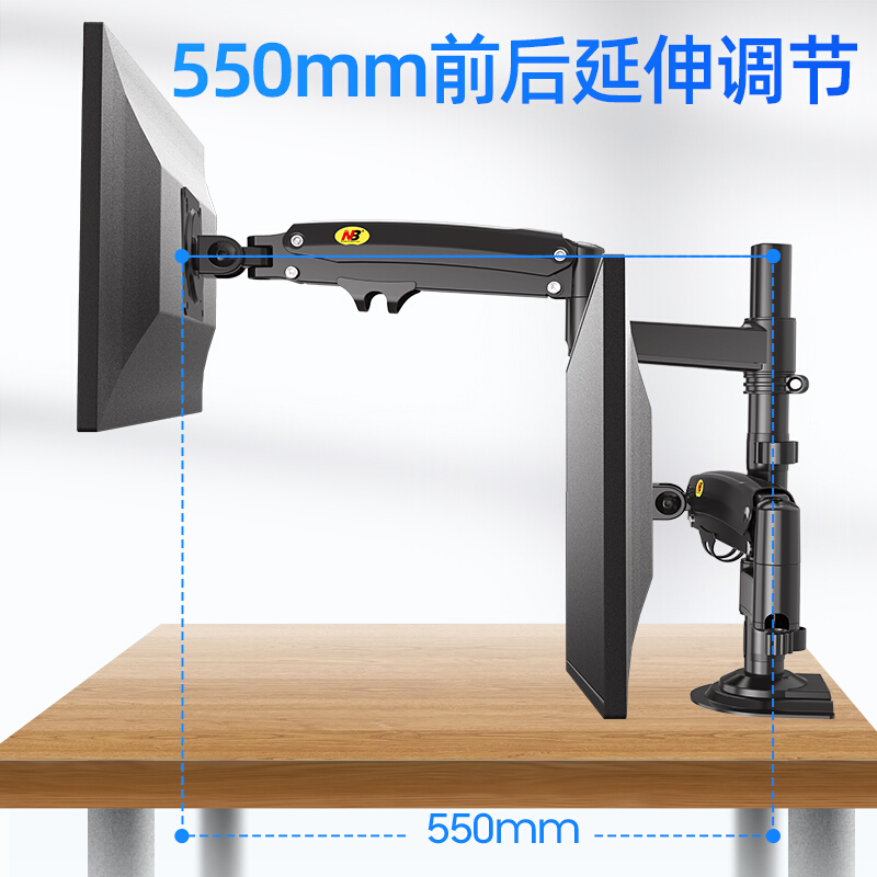 NB H180黑色 显示器支架 双屏拼接电脑支架 免打孔双屏显示器支架臂 桌面显示器底座伸缩旋转升降22-32英寸