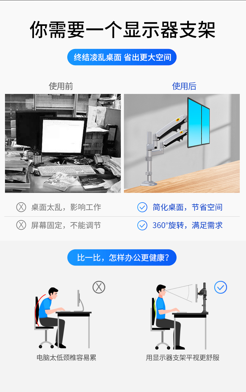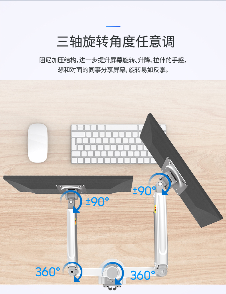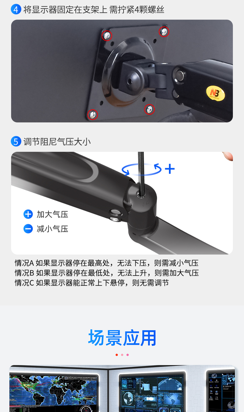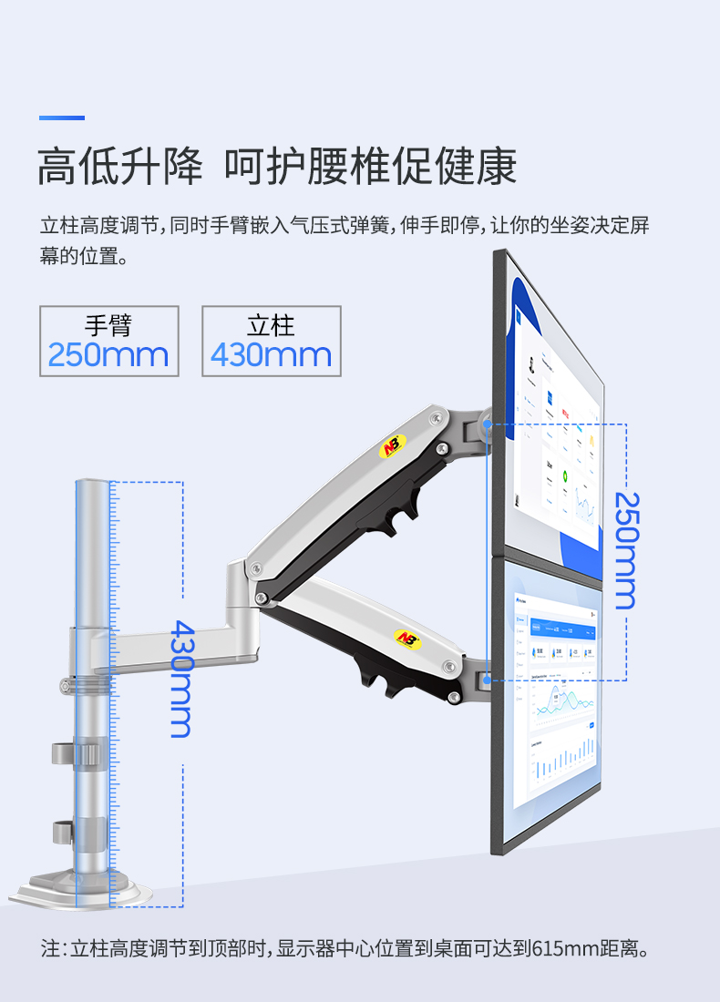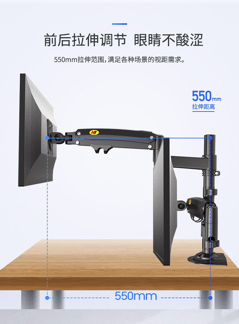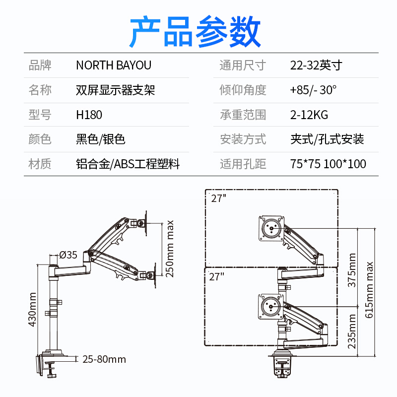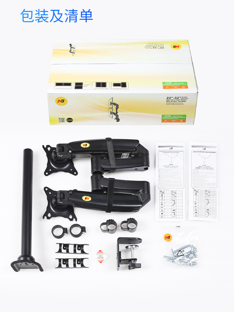 商品名称:NB H180黑色 显示器支架 双屏拼接电脑支架 免打孔双屏显示器支架臂 桌面显示器底座伸缩旋转升降22-32英寸