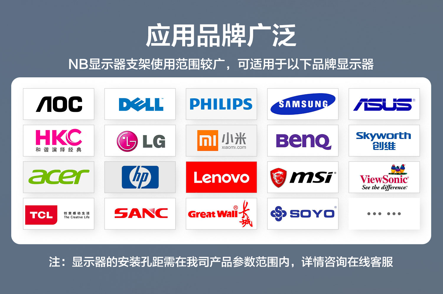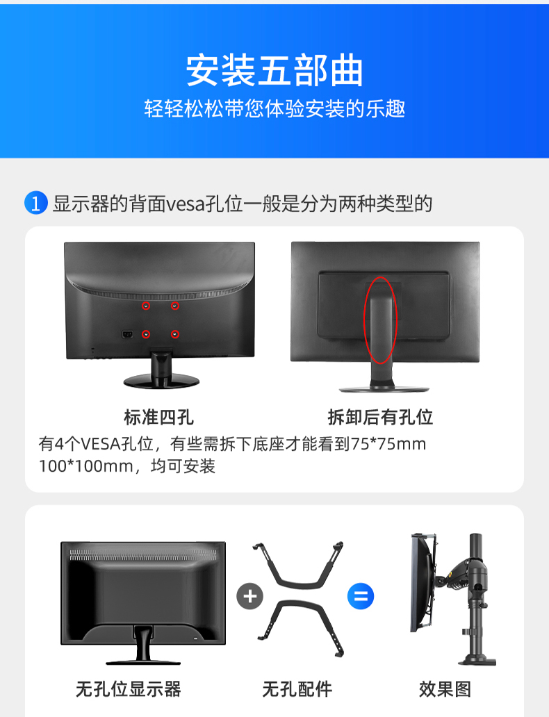 适用vesa孔距(mm):75x75mm;100x100mm