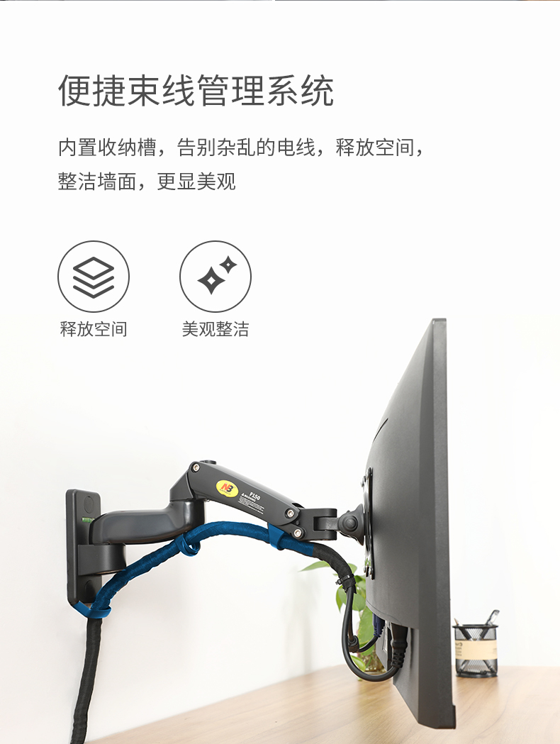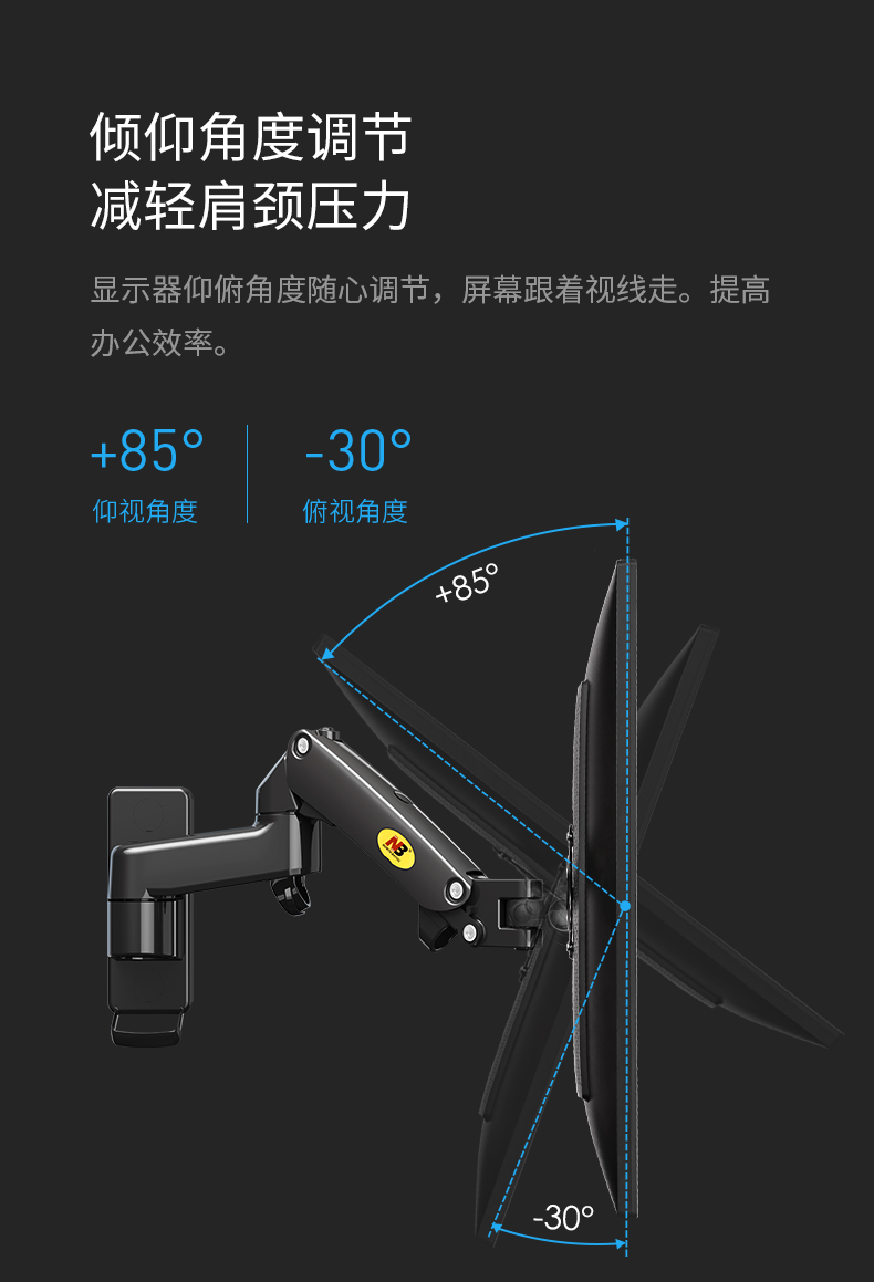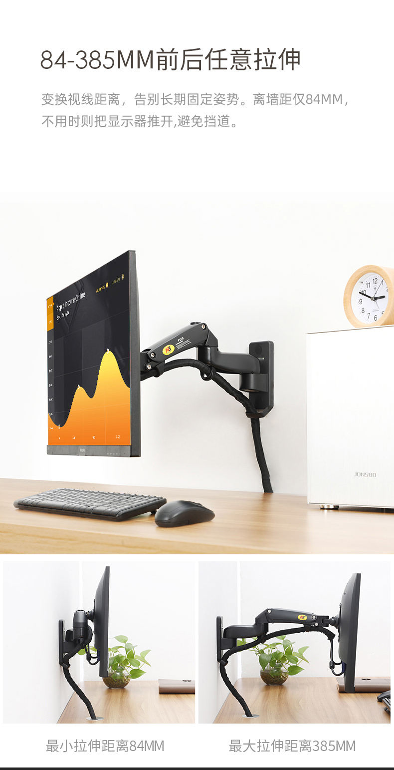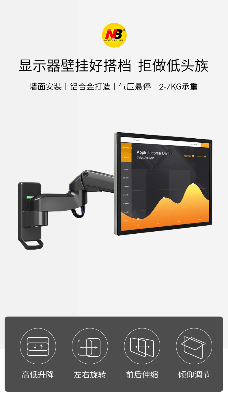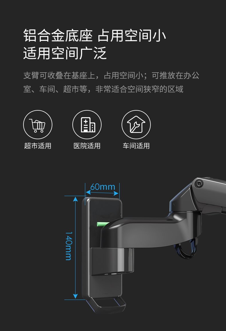 NB F150(17-27英寸)显示器挂架 电脑支架 壁挂旋转升降电脑架 工业医学监控台机器设备壁挂支架 黑色