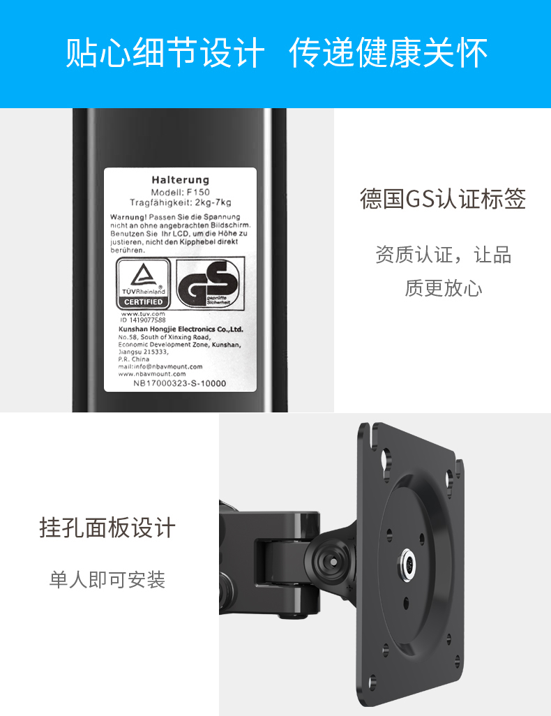 商品名称:NB F150(17-27英寸)显示器挂架 电脑支架 壁挂旋转升降电脑架 工业医学监控台机器设备壁挂支架 黑色