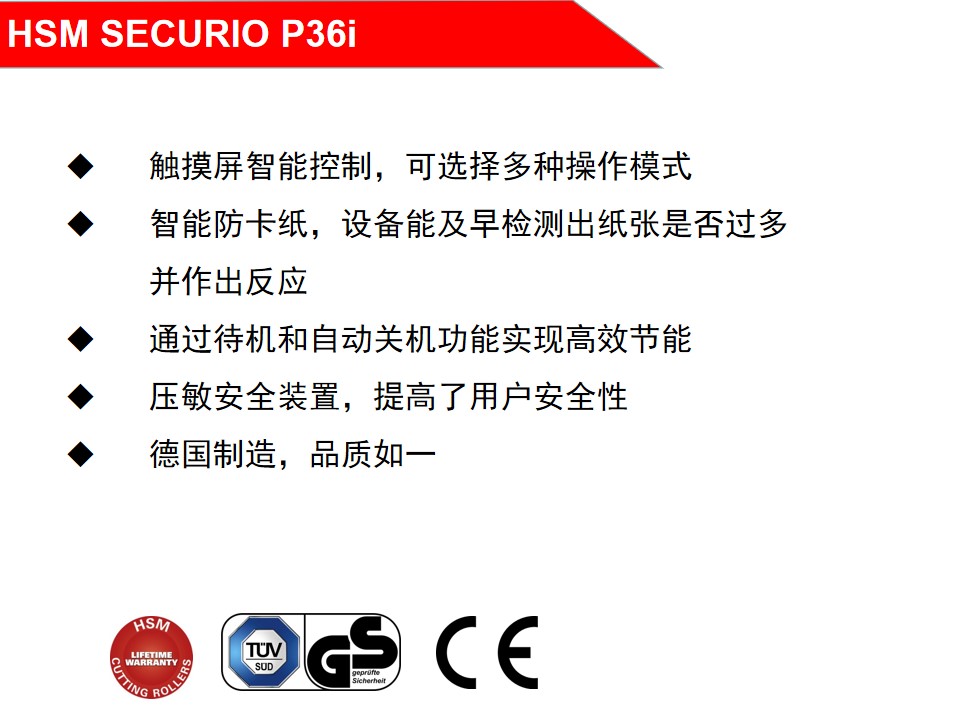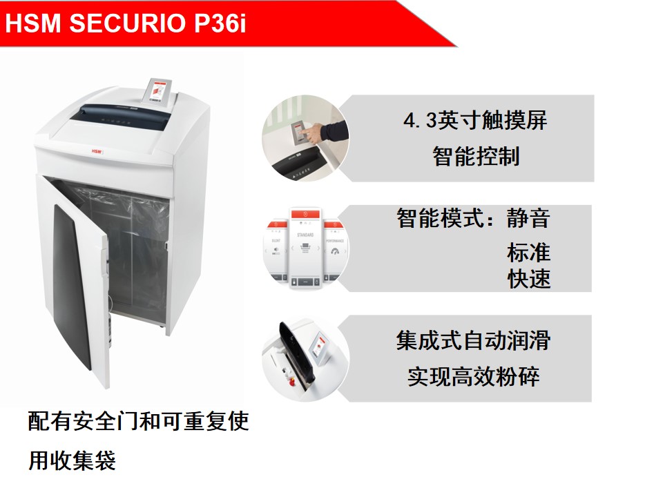 - 商品名称:赫斯密(HSM) SECURIO P36i 4.3英液晶触摸屏,智能驱动大型办公碎纸机
