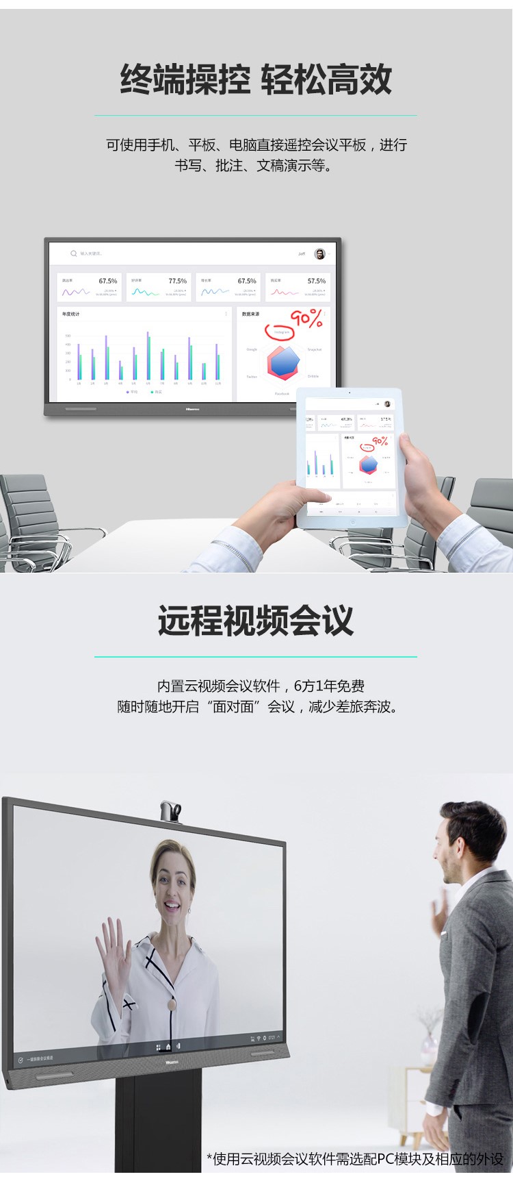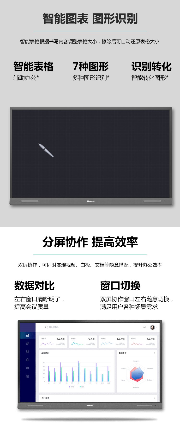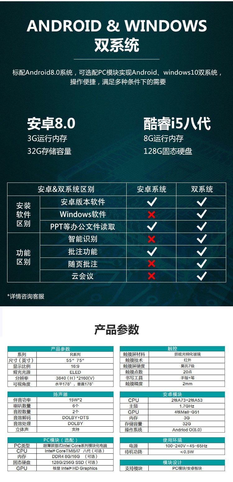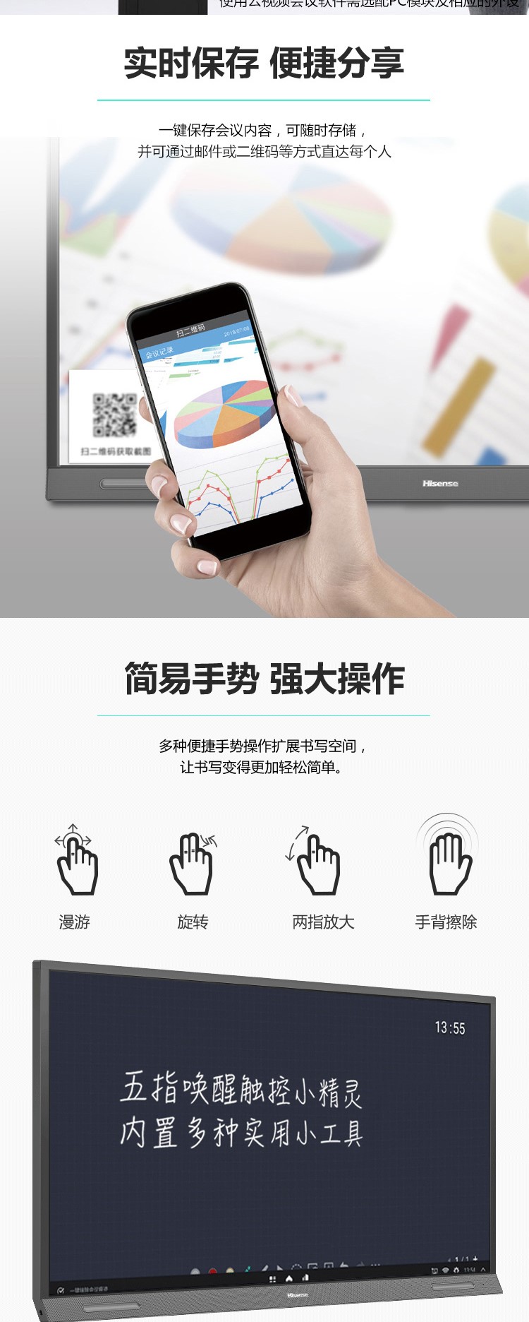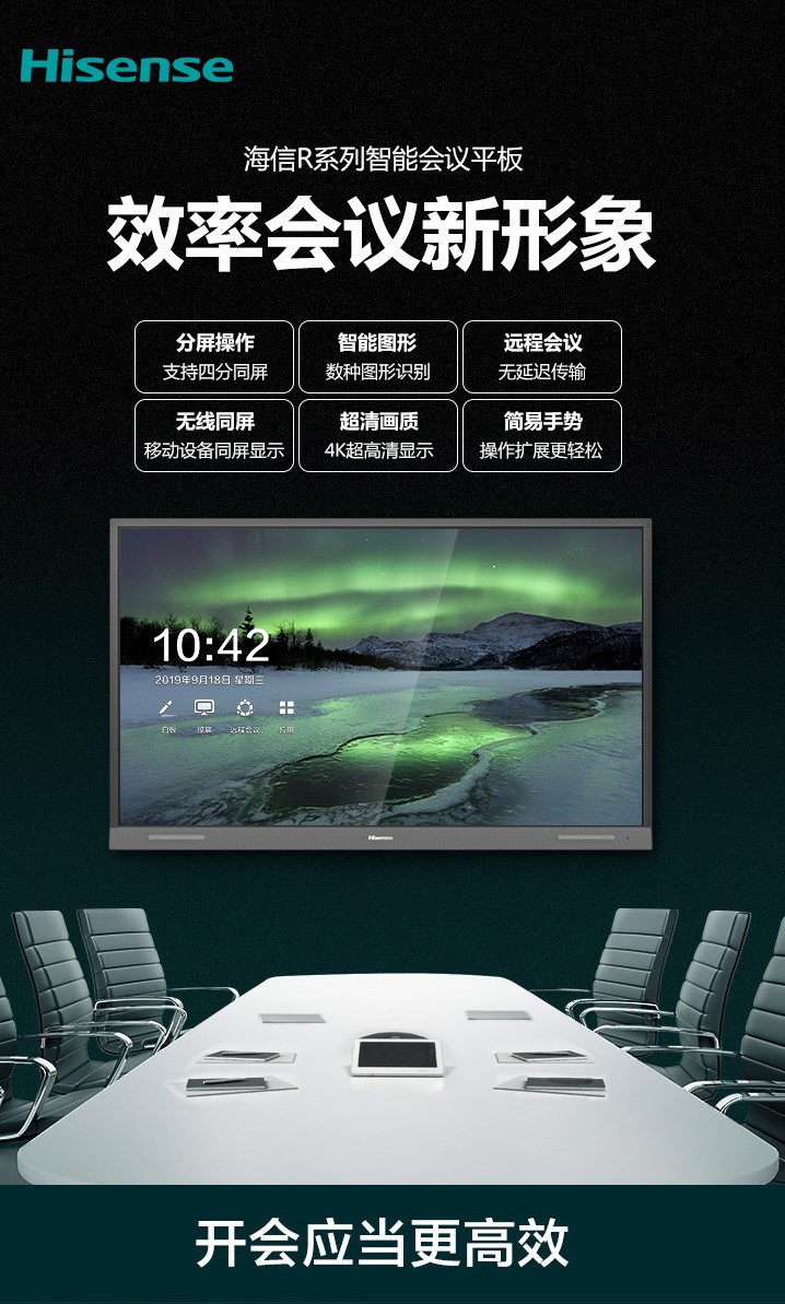 商品名称:海信(Hisense)55R6A 55英寸 商用显示 视频会议教学一体机 触摸交互式 办公投影仪 智能触摸电视屏