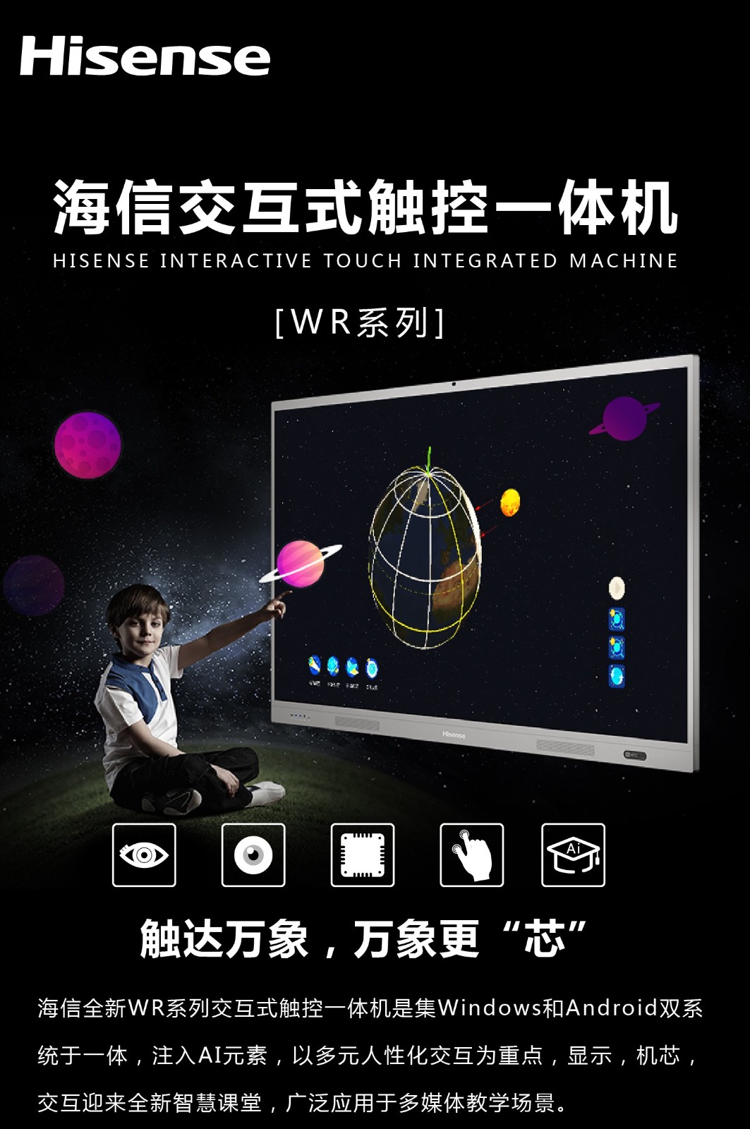 商品名称:海信(Hisense)86WR30A 86英寸 交互式触控一体机 商业显示 高配置教学系统 多元教学工具 触摸电视
