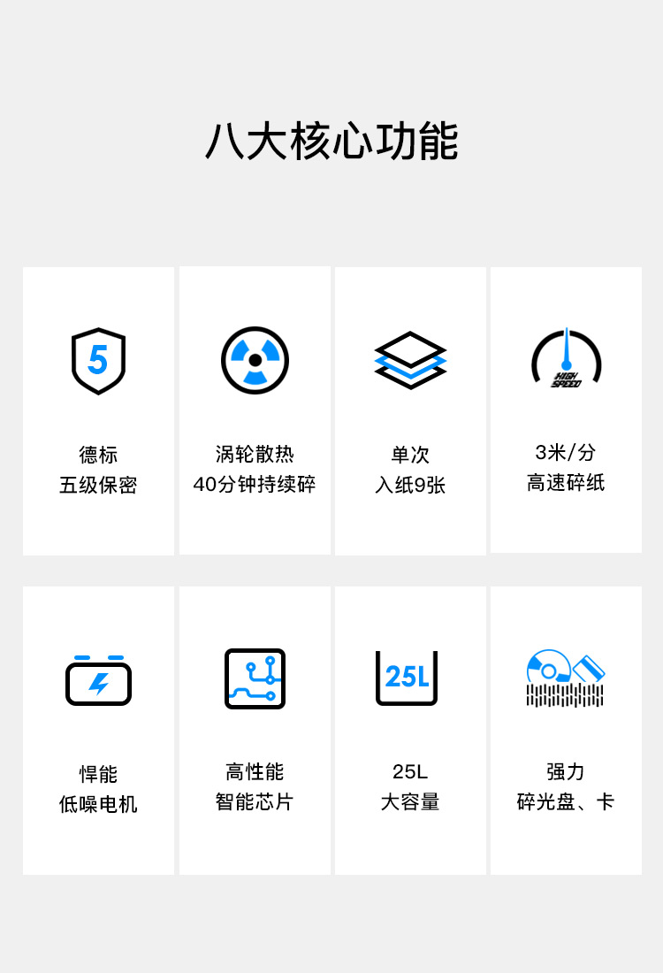 商品名称:歌派(GEPAD)GS-840D 5级保密办公商用碎纸机(单次9张 持续40分钟 25L可碎卡、光盘)