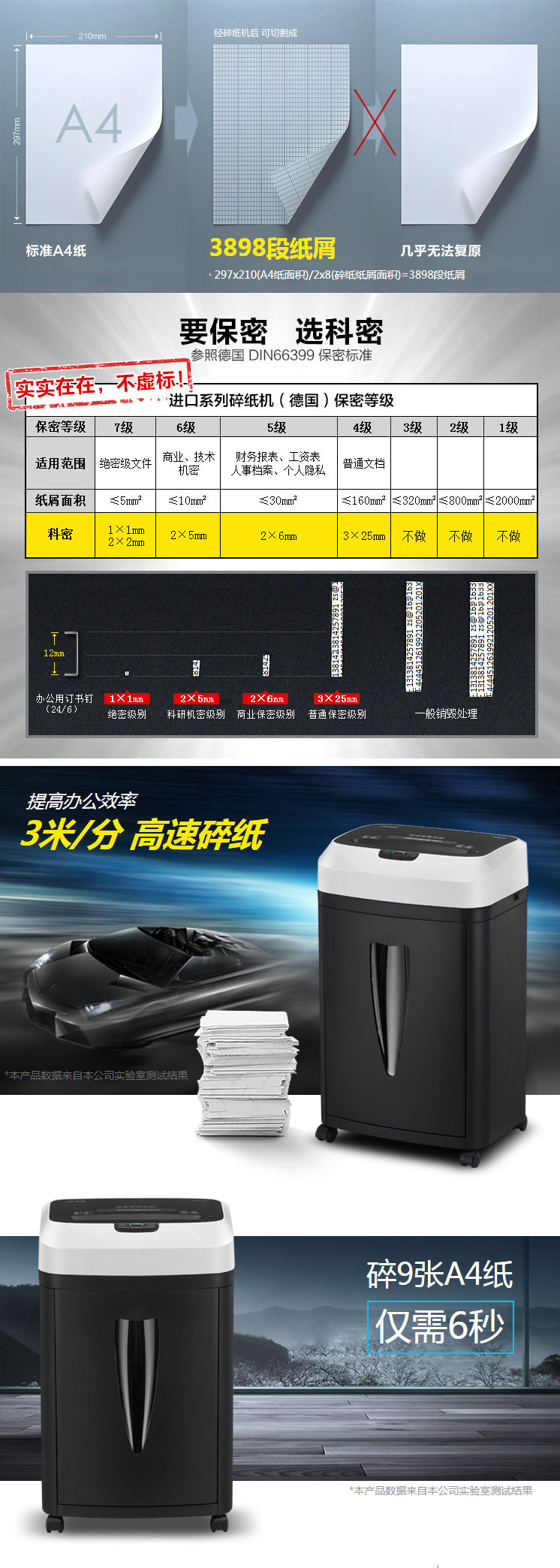 碎纸量(页):9张/A4