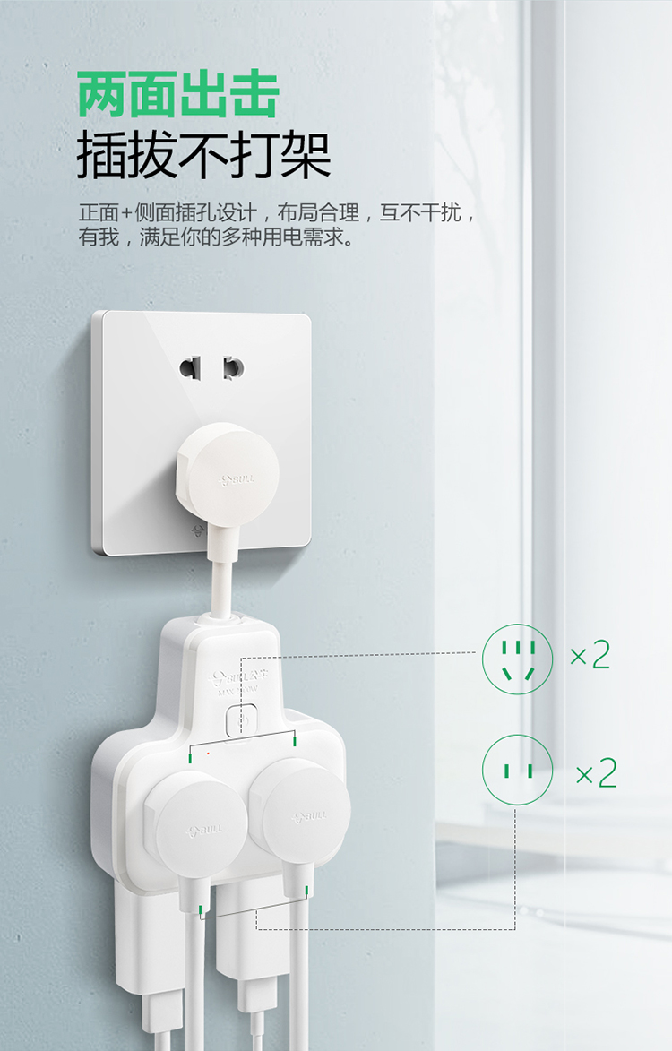 - 商品名称:公牛(BULL)GN-9722K柔性转换插头/品字形一转四插座/无线转换插座/电源转换器 4位总控插座
