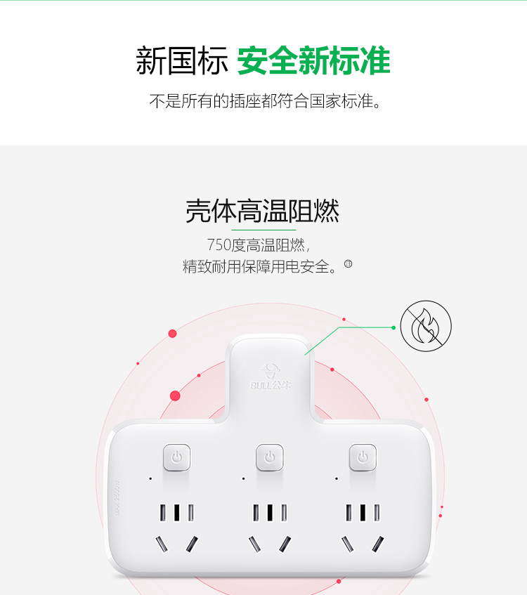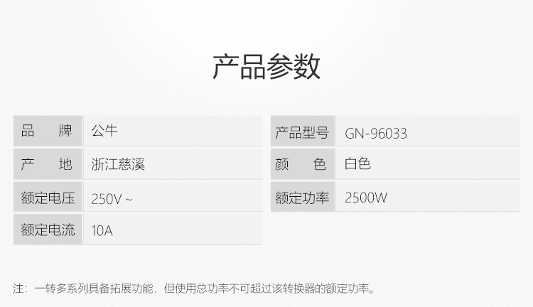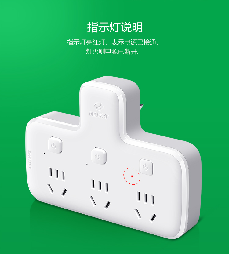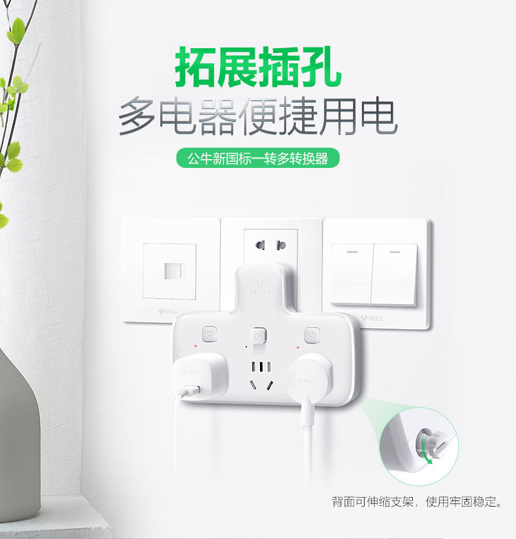 - 商品名称:公牛(BULL)转换插头/品字形一转三插座/无线转换插座/电源转换器 3位分控插座 GN-96033