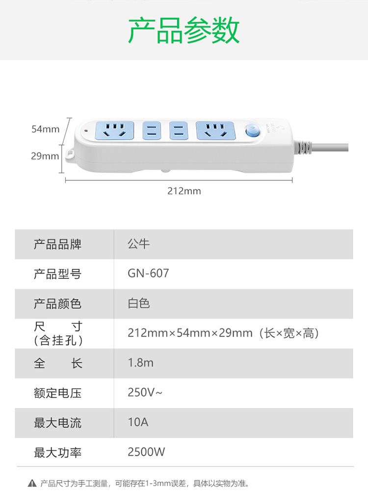 - 商品名称:公牛(BULL)GN-607 4位总控全长1.8米新国标插座/插线板/插排/排插/接线板/拖线板