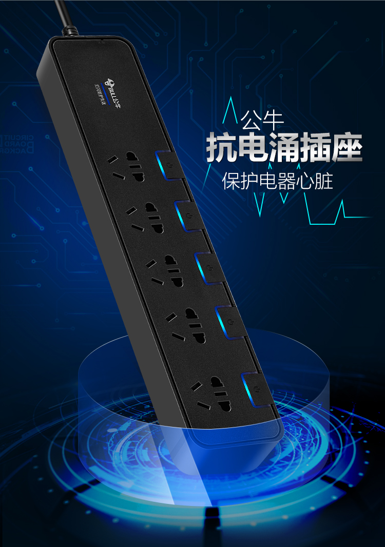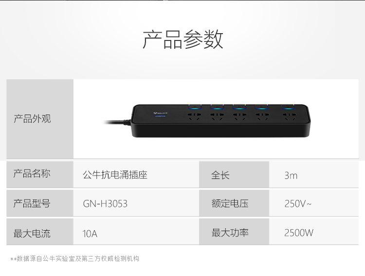 - 商品名称:公牛(BULL)GN-H3053抗电涌抗浪涌插座/插线板/插排/排插/接线板/拖线板5位分控全长3米 保护智能电器