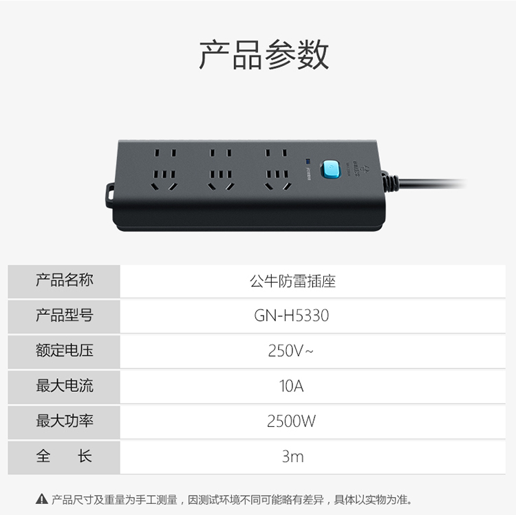 - 商品名称:公牛(BULL)GN-H5330新国标插座/插线板/插排/排插/接线板/拖线板 6位总控全长3米