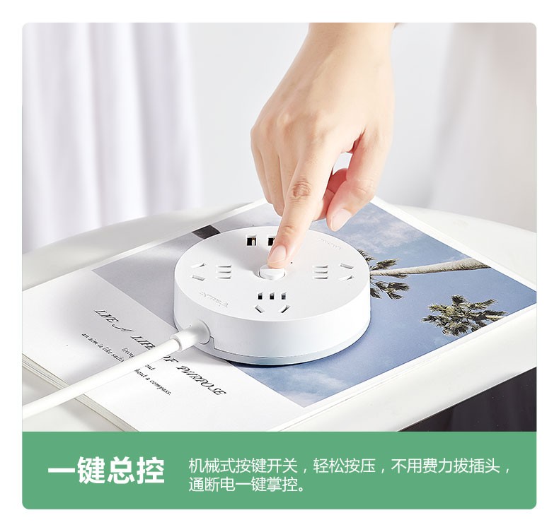 - 商品名称:公牛(BULL) GN-R203U插座/圆形系列 带儿童保护门/新国标/排插/插排/接线板 3USB口+三位总控全长1.8米