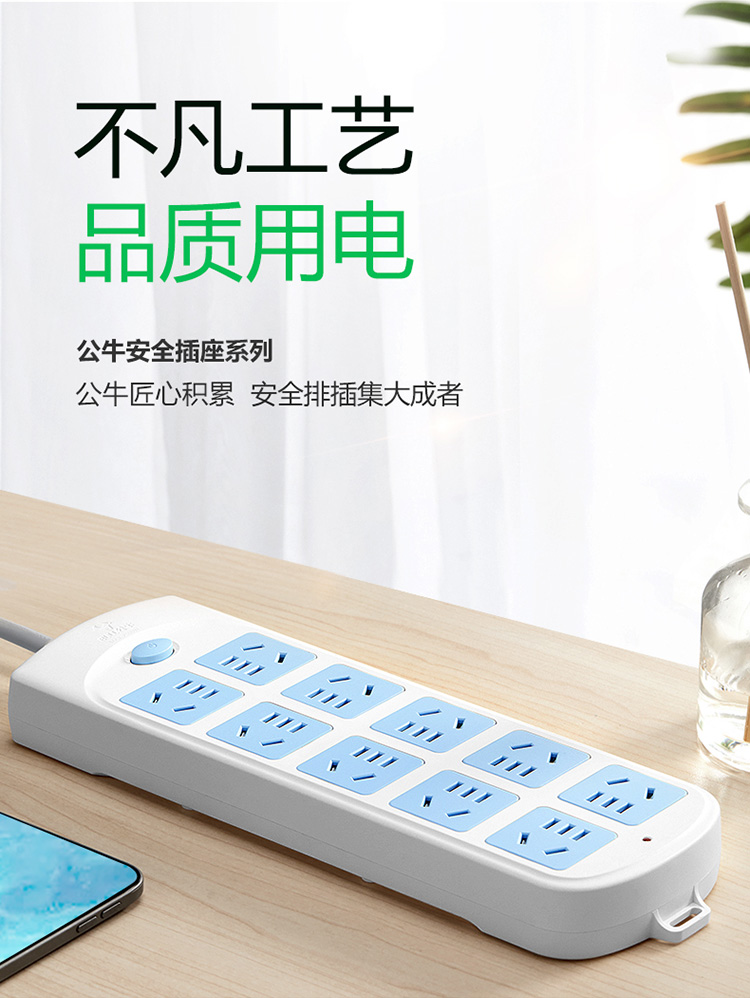 - 商品名称:公牛(BULL)GN-605新国标插座/插线板/插排/排插/接线板/拖线板 10位总控全长3米超功率保护