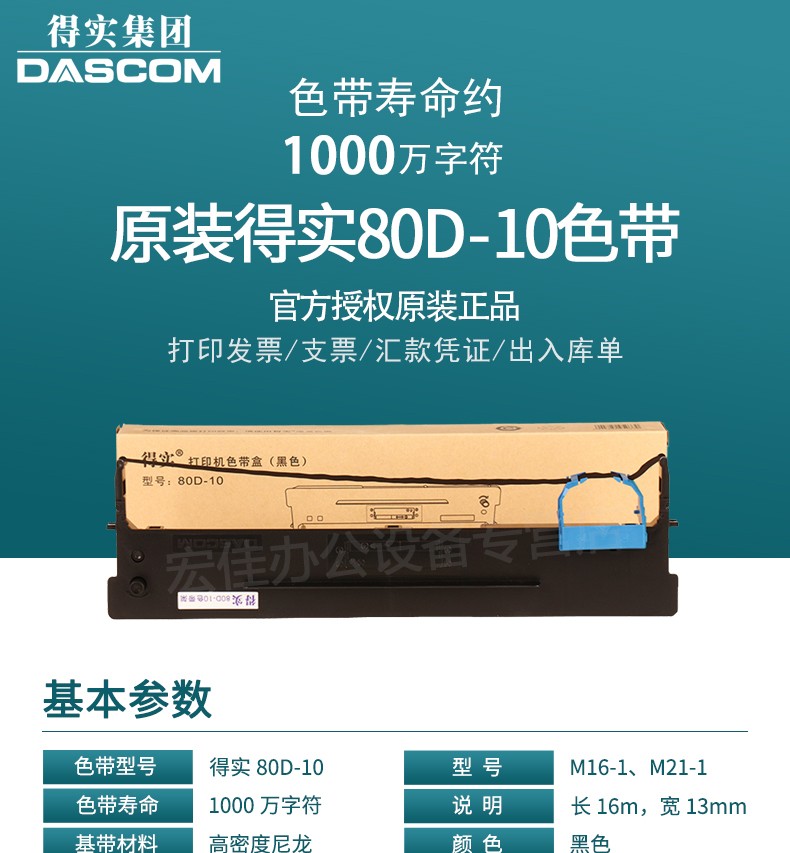商品名称:得实色带80D-10 色带架AR510/500Pro DS618 630Pro(百旺专用)针式打印机 【80D-10】色带架含芯 一个 原装上机可用