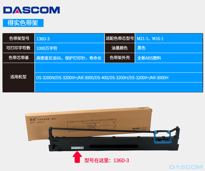 商品名称:得实(Dascom) 136D-3色带架 适用DS-3200IVDS-3200III+AR-3000