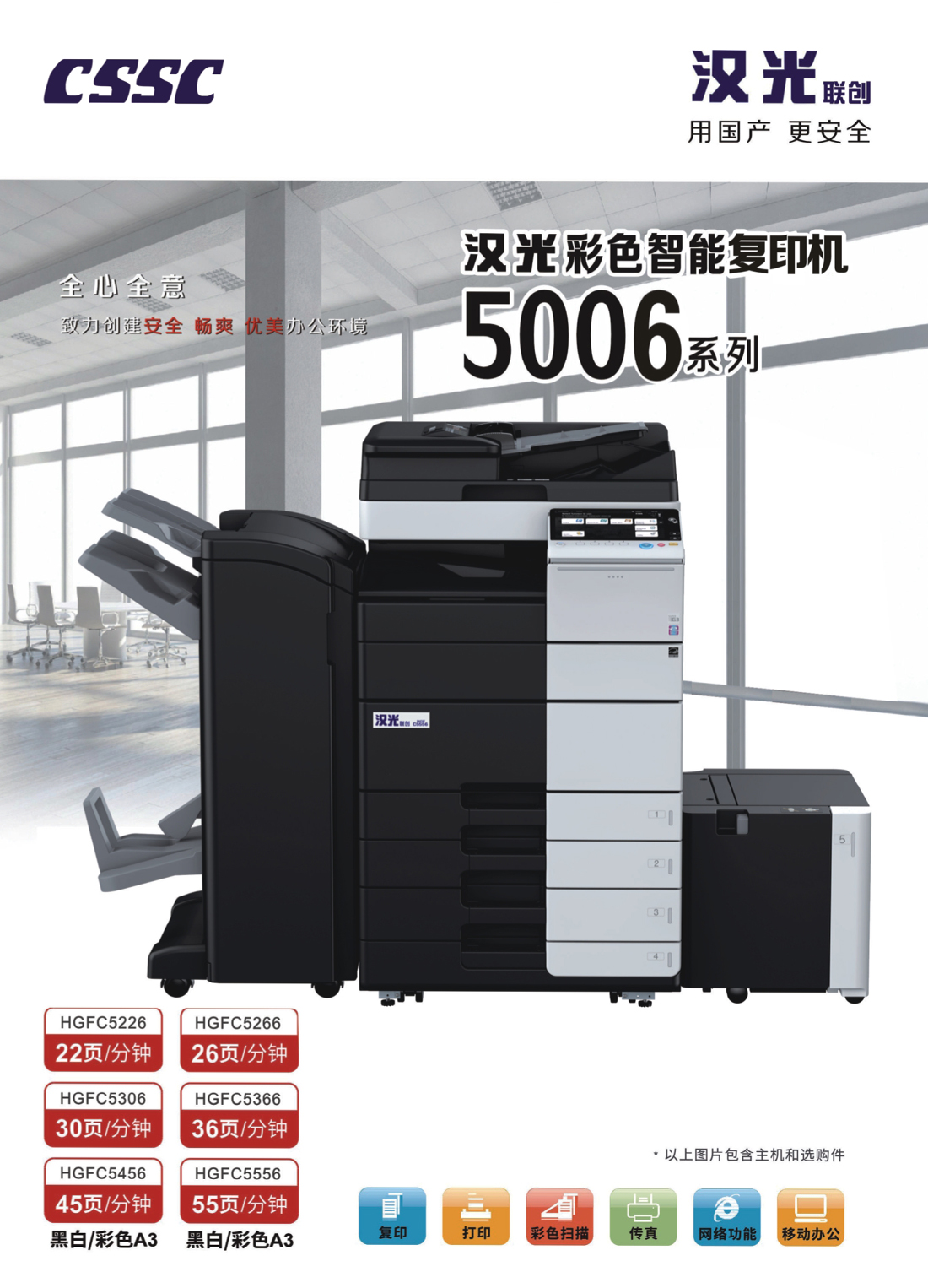 商品名称:国产汉光HGFC5226 彩色智能复印机主机+输稿器+双纸盒+原装工作台