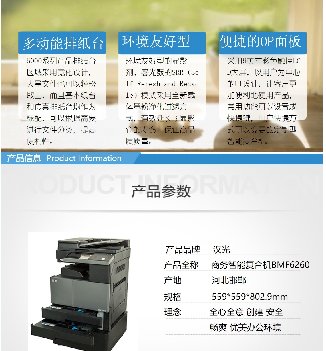 商品名称:国产品牌 汉光BMF6260 A3黑白打印复印扫描 一体机复合机(含双面输稿器 双纸盒 工作台)一年保修