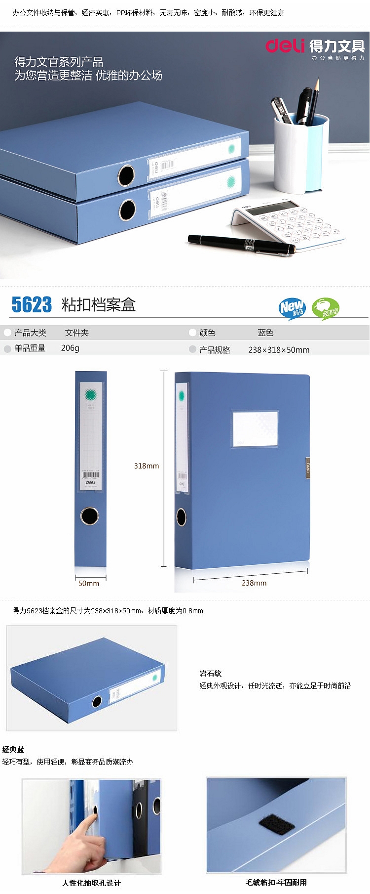 - 商品名称:得力 5623 档案盒 (单位:只) 蓝