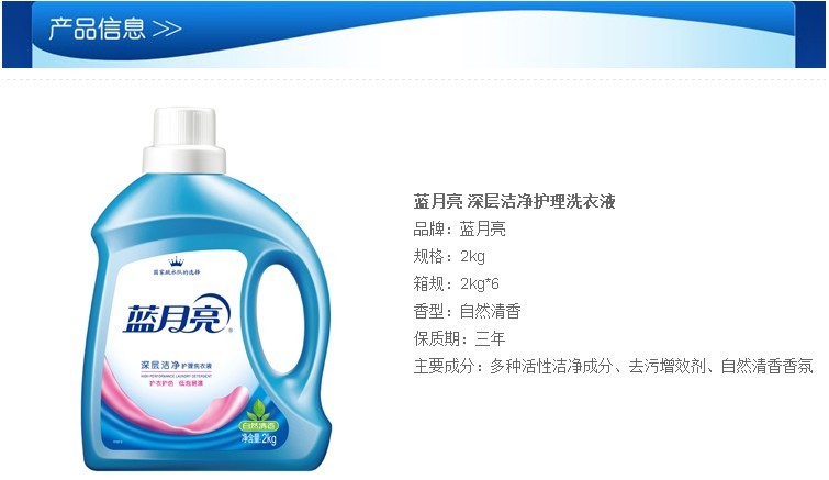 商品名称:蓝月亮月亮2kg 洗衣液 深层洁净护理 蓝色