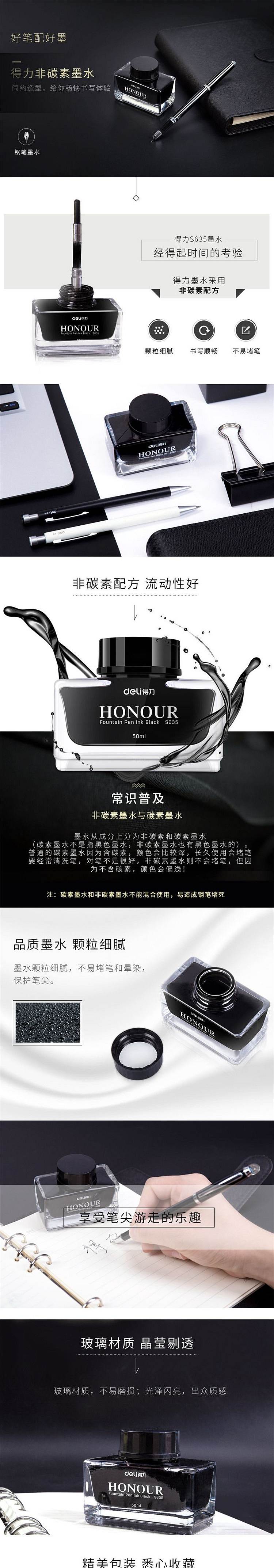 - 商品名称:得力 S635 瓶装墨水(黑) (单位:盒)