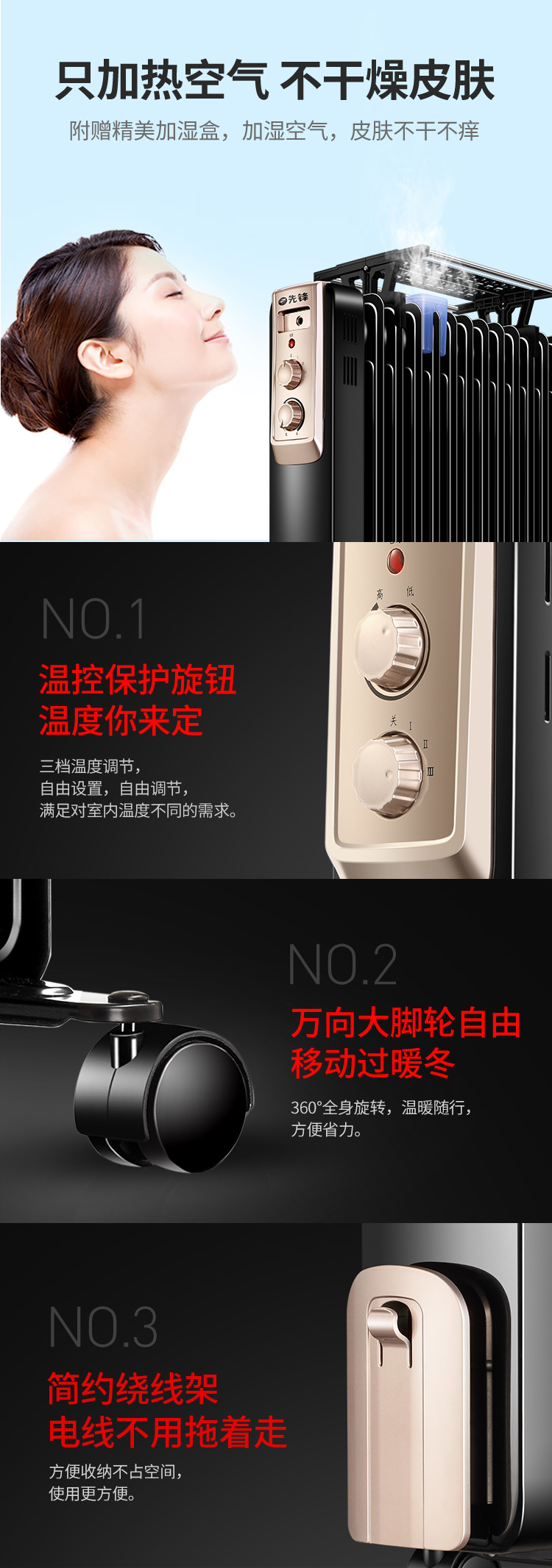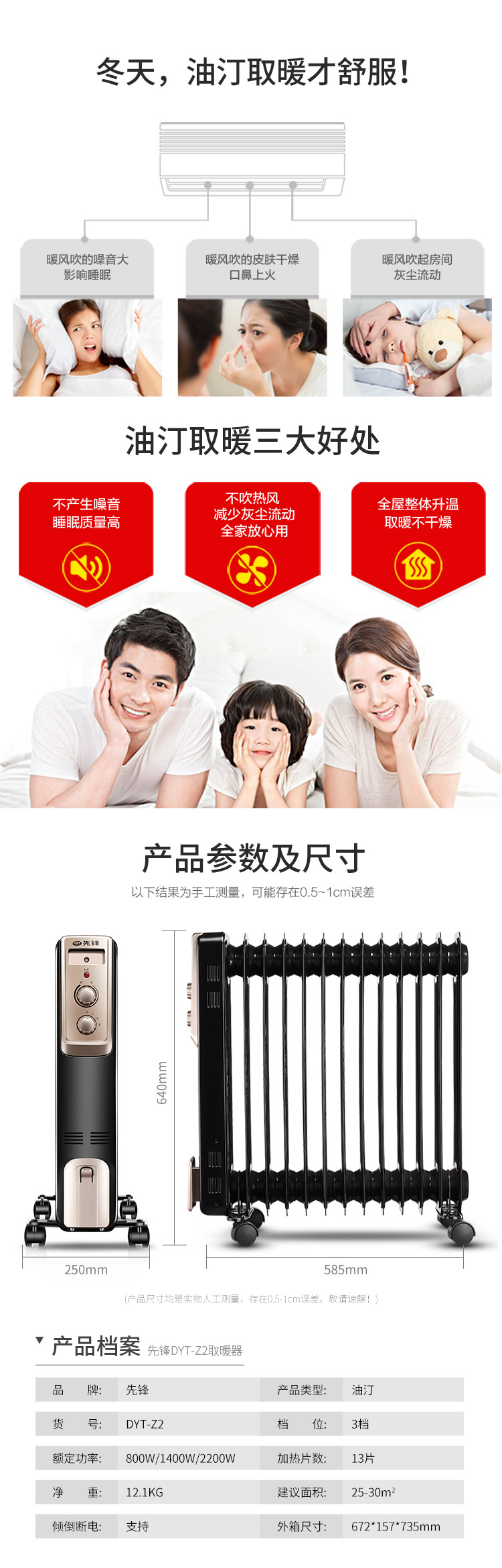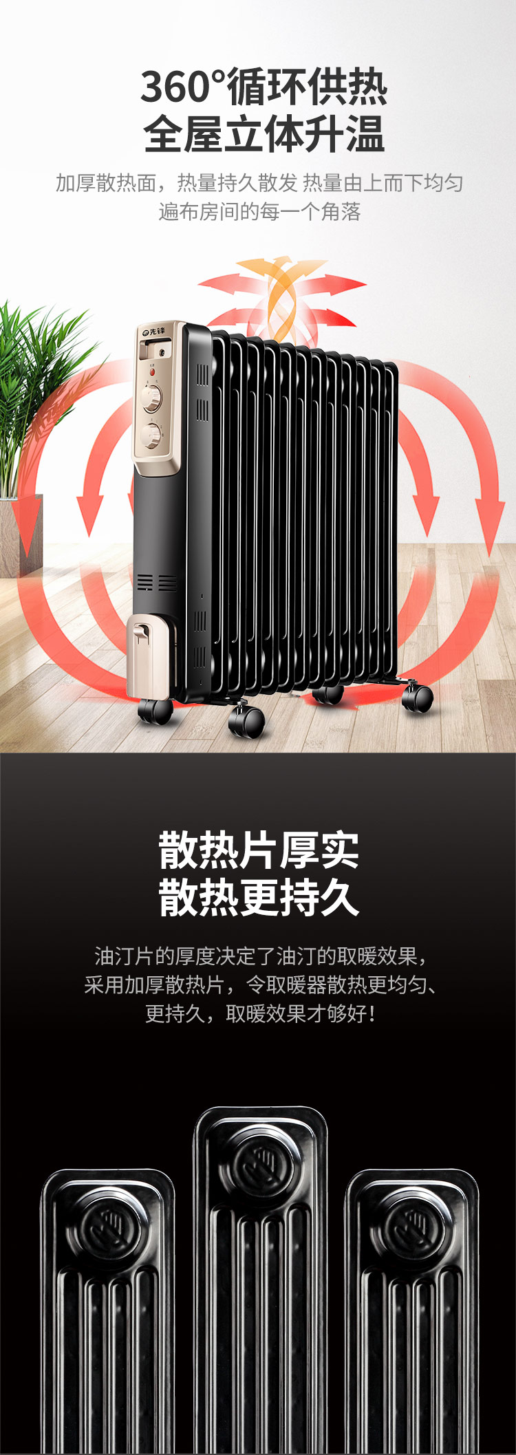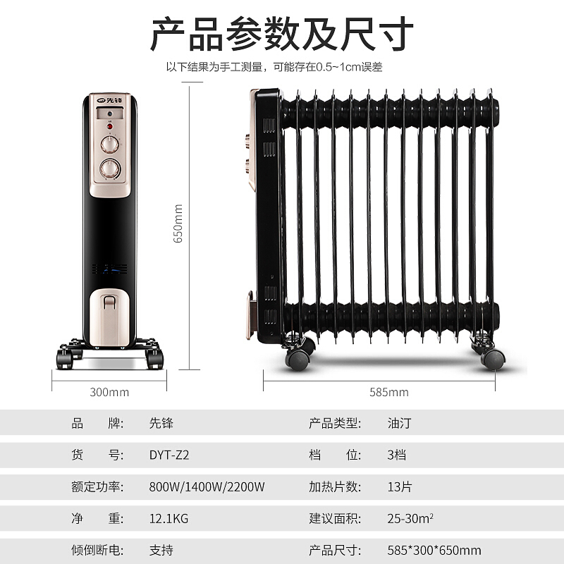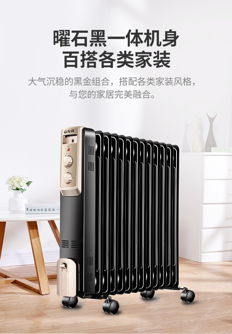 - 商品名称:先锋取暖器DYT-Z2电油汀 3档 立式 2200W 适用面积25-30㎡ 13片黑色