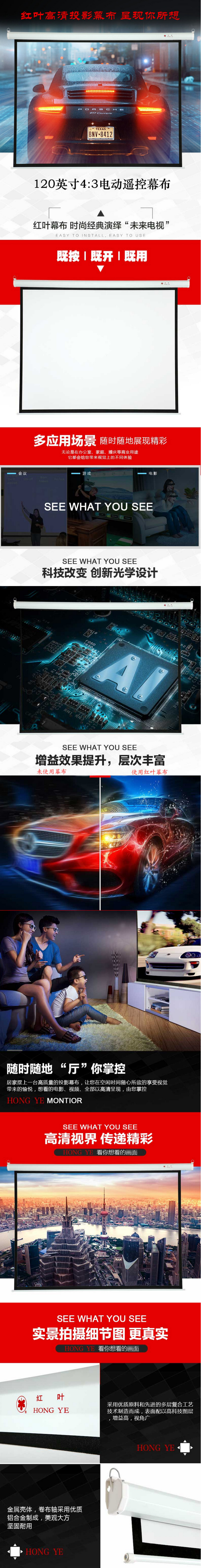 - 商品名称:红叶(Red Leaf)120英寸4:3玻珠电动遥控幕布