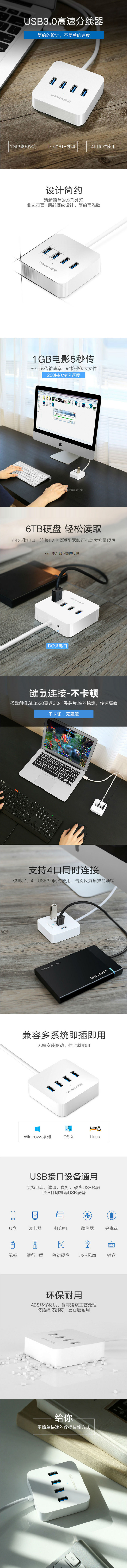 - 商品名称:绿联(UGREEN)30221 USB 3.0HUB四口集线器 1.5米 白色