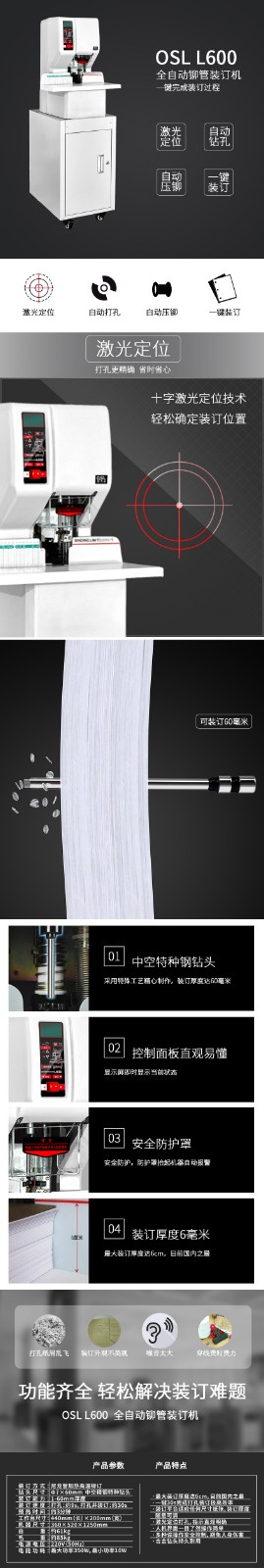 - 商品名称:欧市利OSL L600 财务全智能自动铆管一次打孔装订机