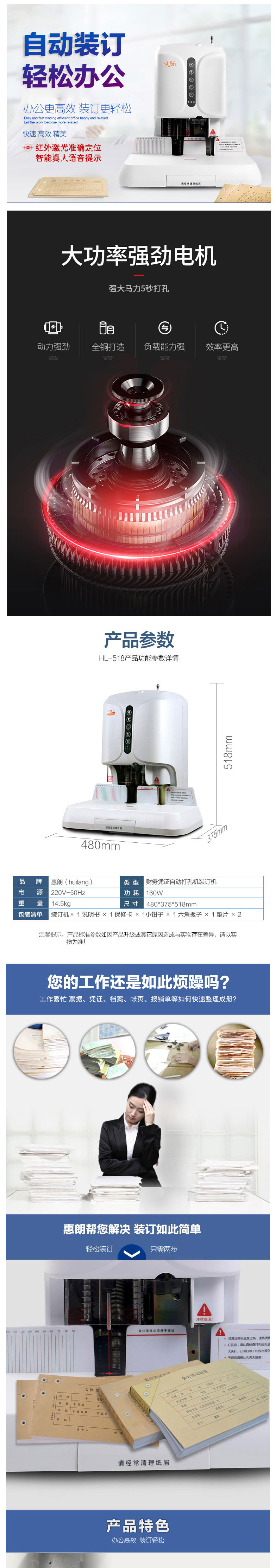 - 商品名称:惠朗(HUILANG) HL-518 档案财务装订机自动财务凭证装订机