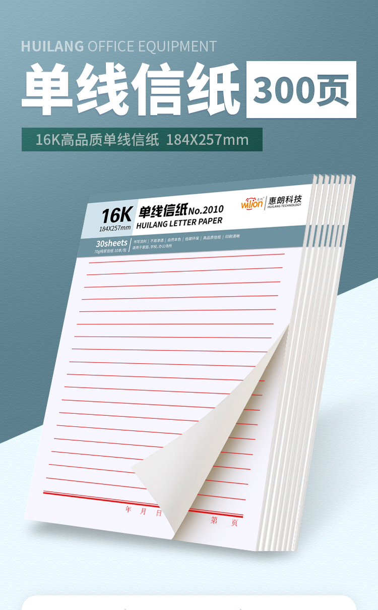 - 商品名称:惠朗(huilang)2010 10本16K/30张加厚单线信纸笔记本子贴胶易撕防掉草稿纸作业本