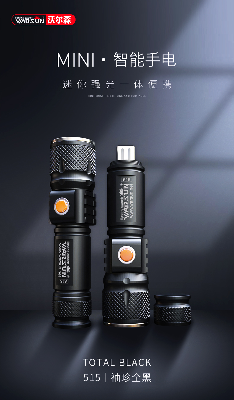 - 商品名称:沃尔森 515 LED超亮远射迷你强光手电筒可充电户外照明防水家用超小袖珍微型式